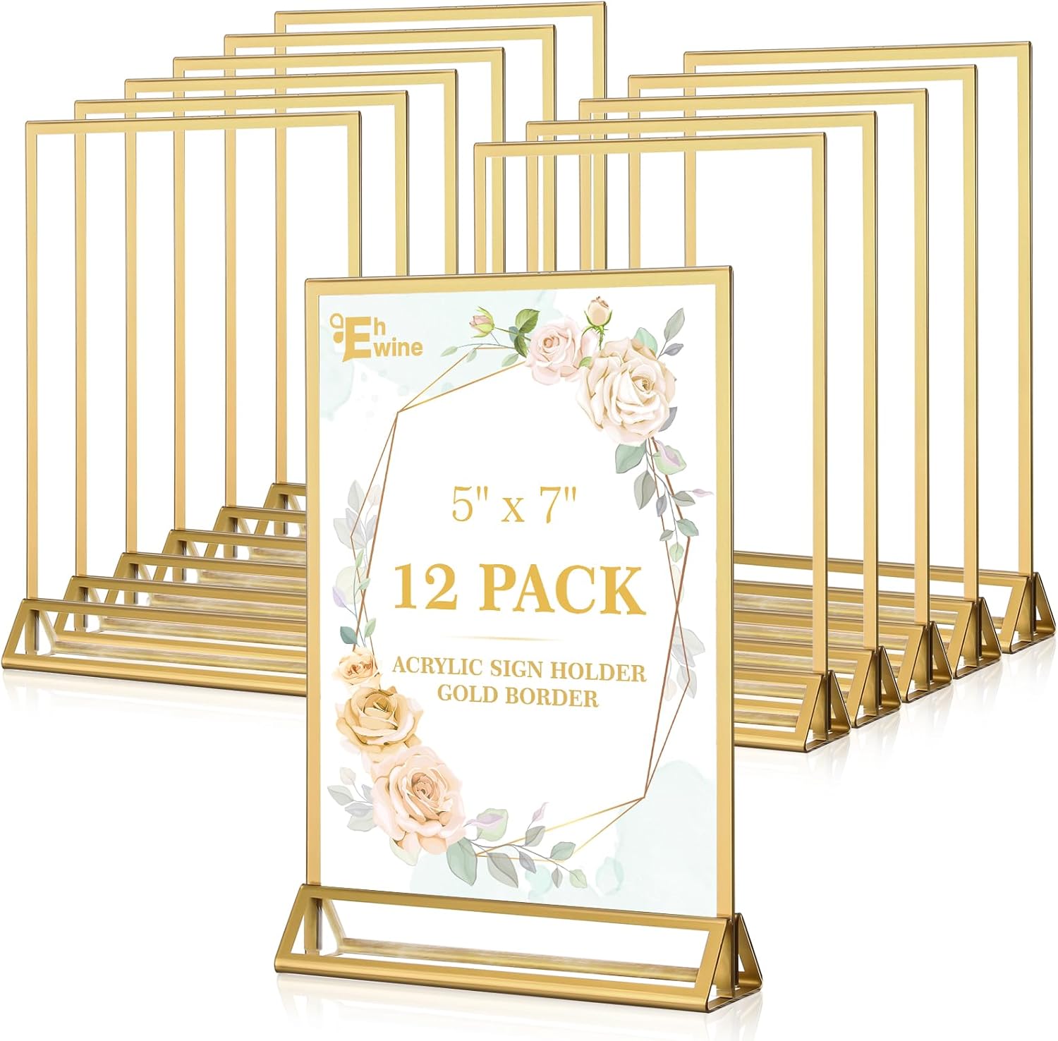 - Clear Golden Border Picture Frame: EHWINE acrylic sign holders are incredibly clear and transparent, providing a professional look to your displays. With no distortion or cloudiness, your message will be conveyed with crystal-clear clarity