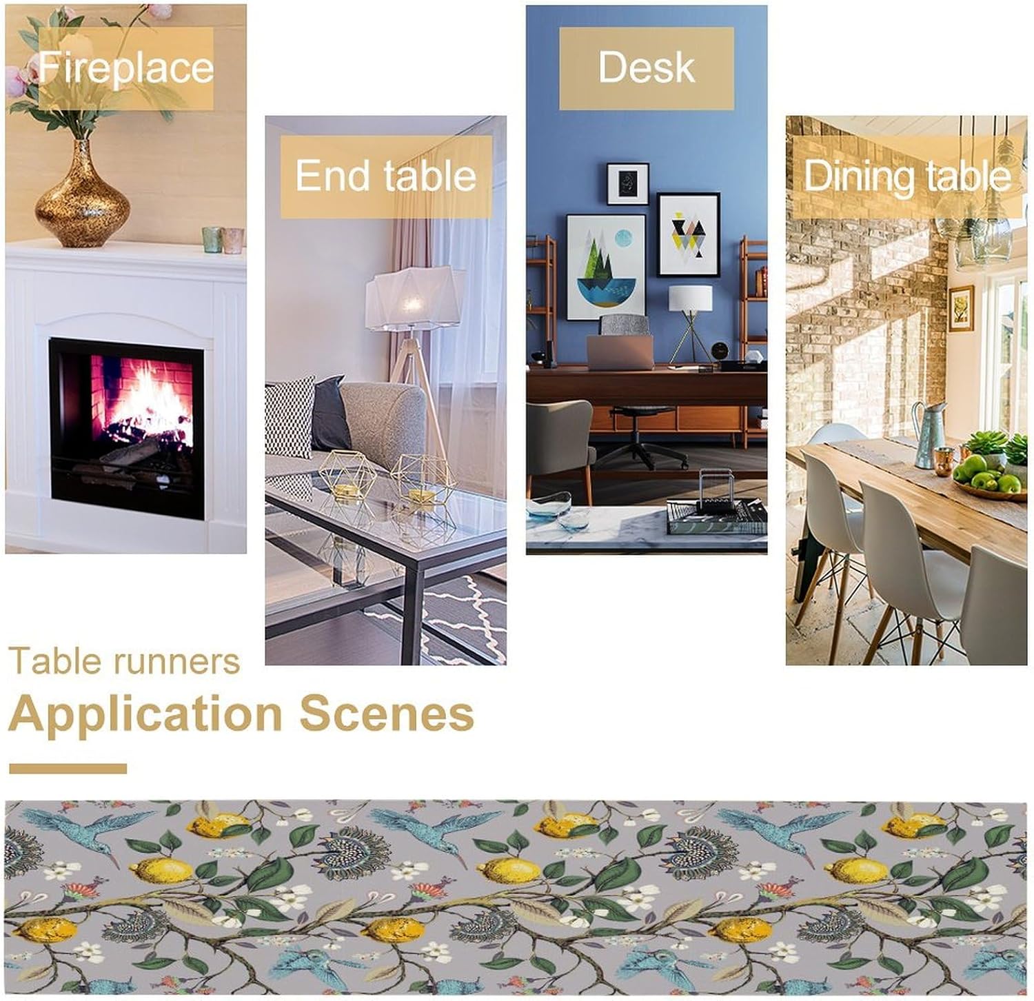 Table Runner with Flowers and Birds, Spring Plant Flowers Table Decoration Linen Table Runner Family Party Party Decorations 13x36 Inches