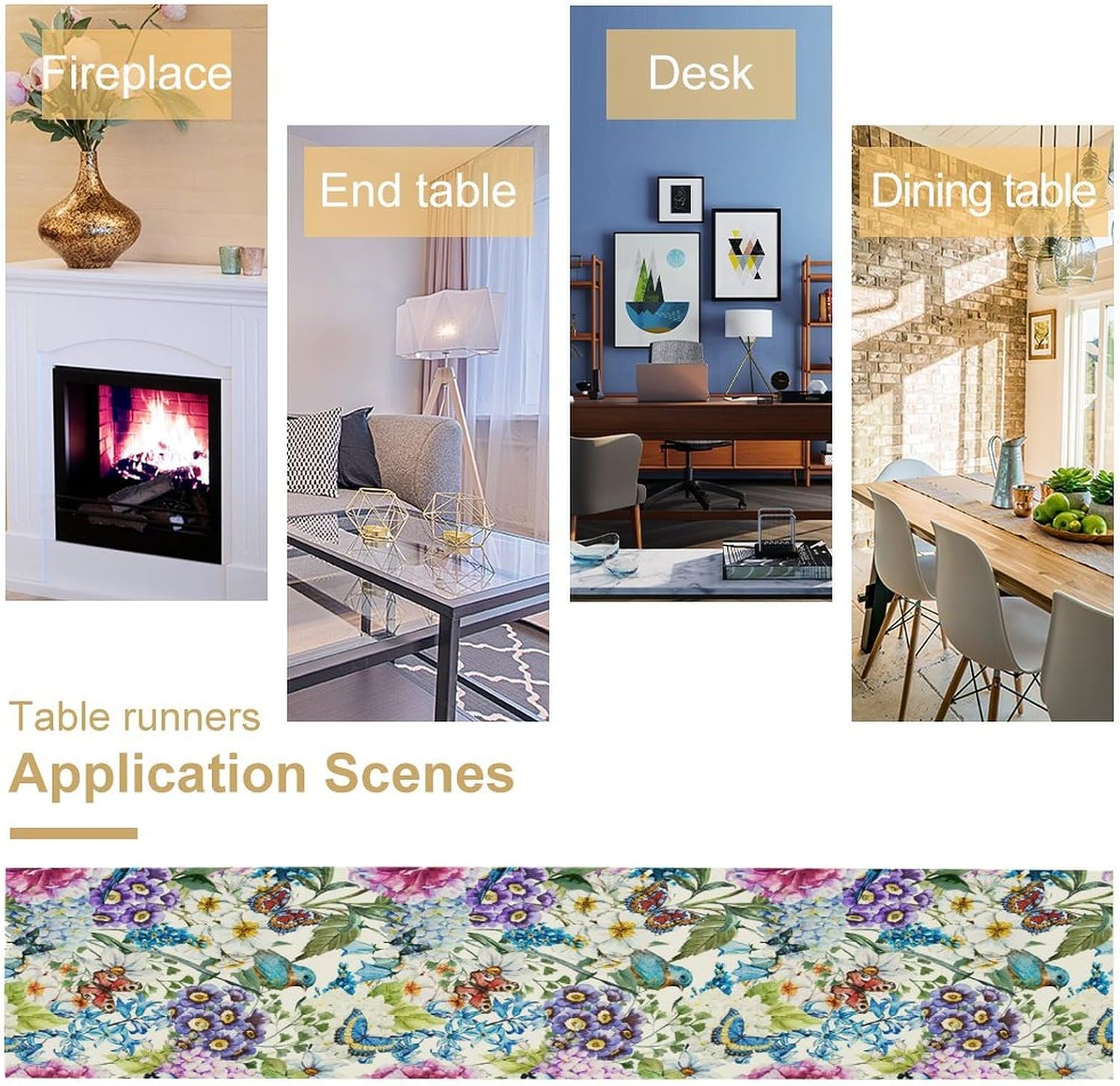 Brown Bird Floral Table Runner Spring Flower Kitchen Table Decoration Suitable for Family Dinner Decoration 13x60 Inch