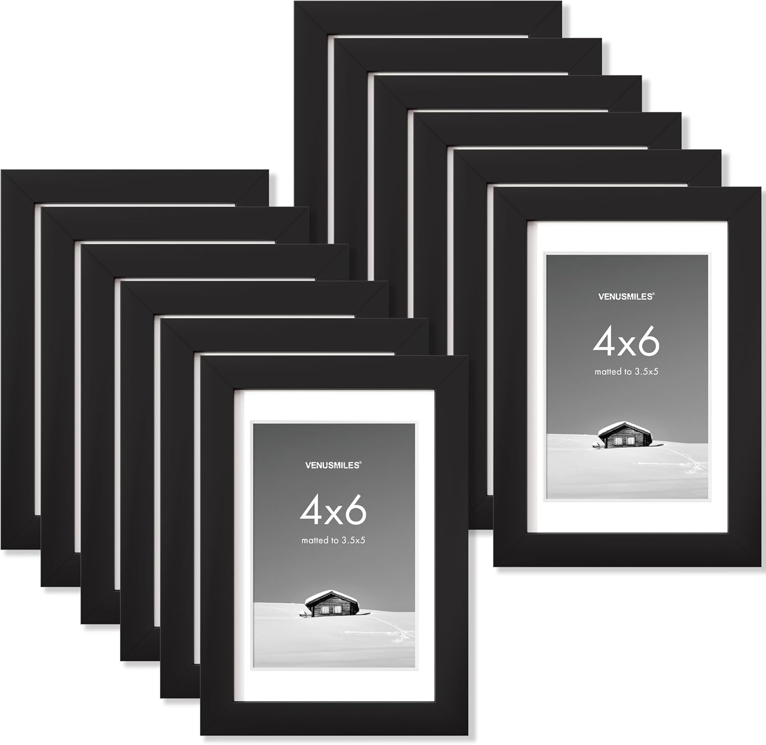 4x6 inch Picture Frame, 4x6 Photo Frames with 3.5x5 Removable Mat - High Definition Plexiglass - Vertical and Horizontal Display - Wall Hanging Frame - Black, 12 Pack