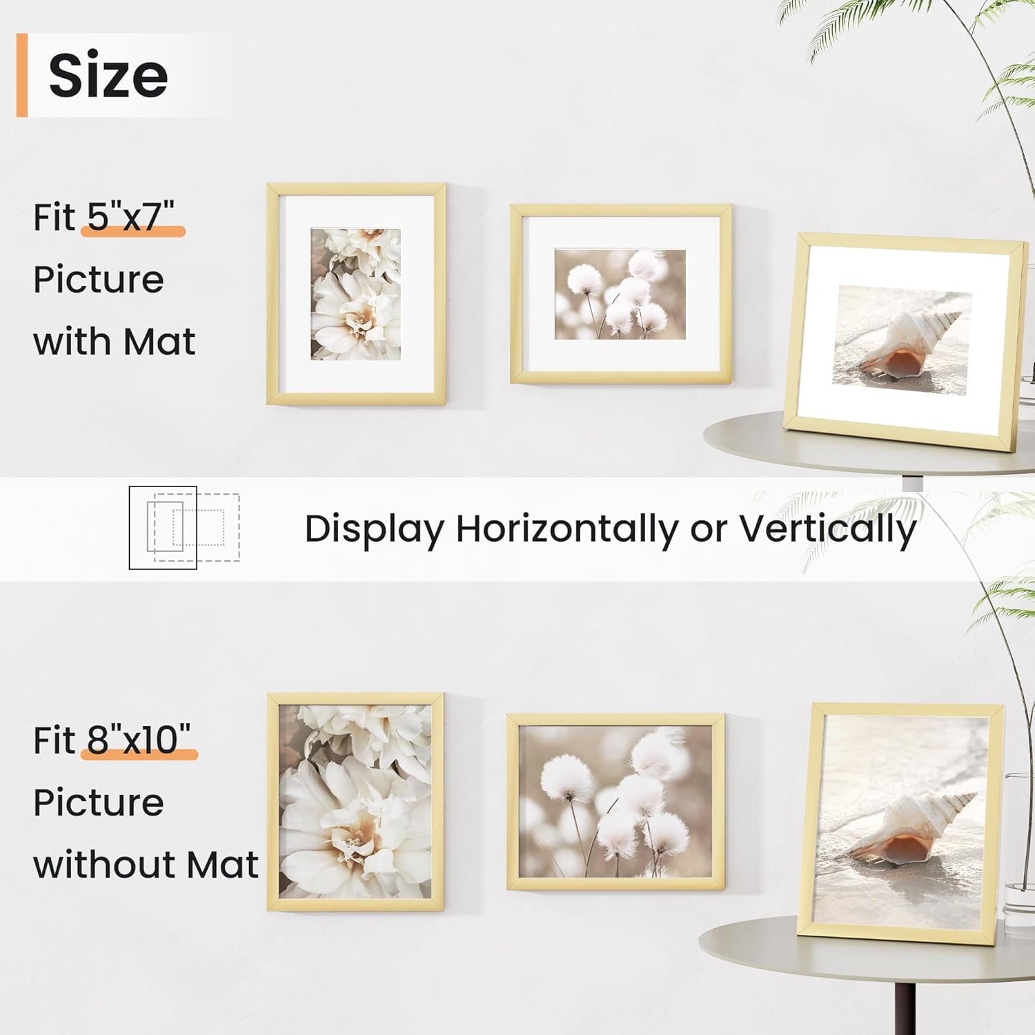 8x10 inch Picture Frame, 8x10 Photo Frames with 5x7 Removable Mat - High Definition Plexiglass - Vertical and Horizontal Display - Wall Hanging Frame - Gold, 12 Pack
