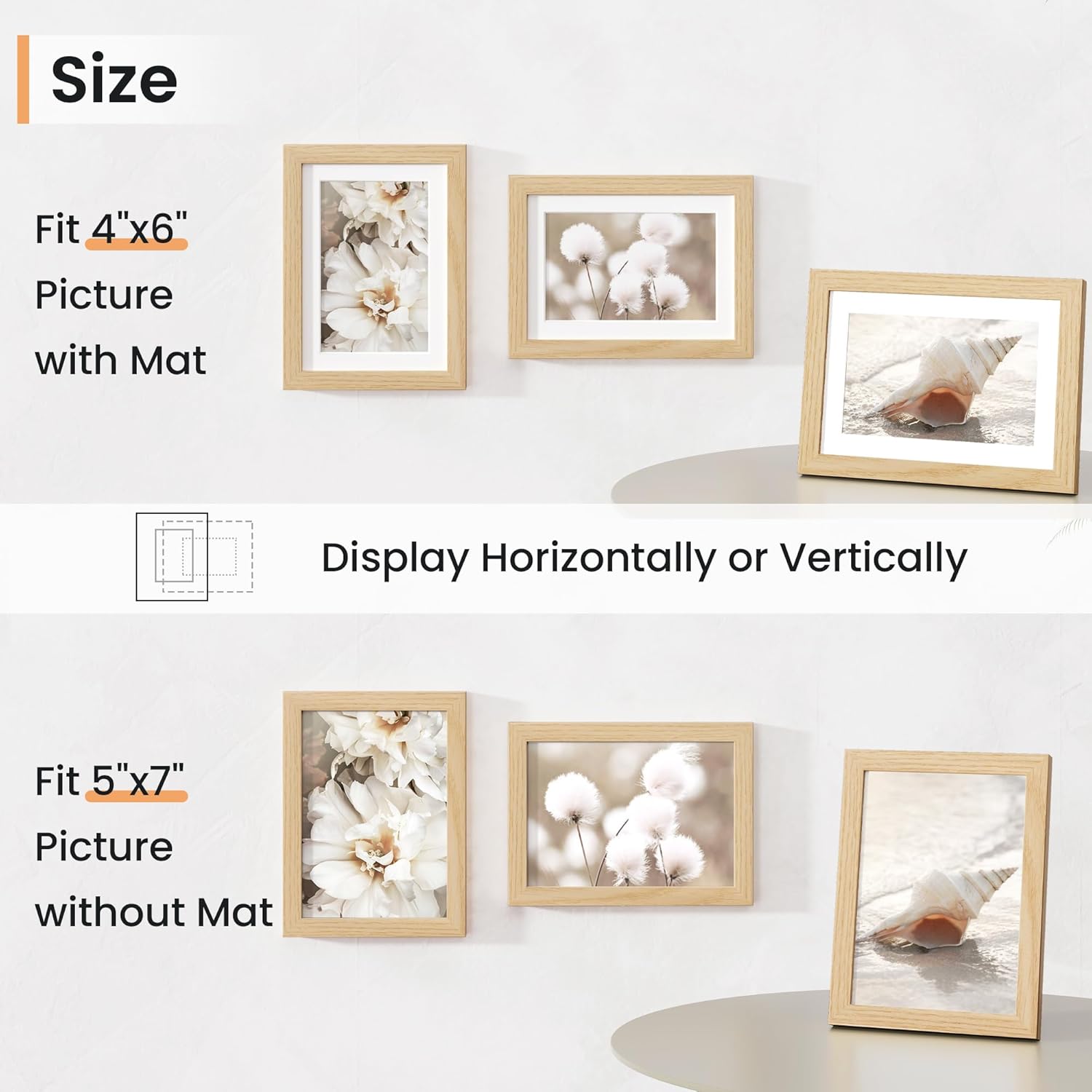 5x7 inch Picture Frame, 5x7 Photo Frames with 4x6 Removable Mat - High Definition Plexiglass - Vertical and Horizontal Display - Wall Hanging Frame - Oak Color, 12 Pack