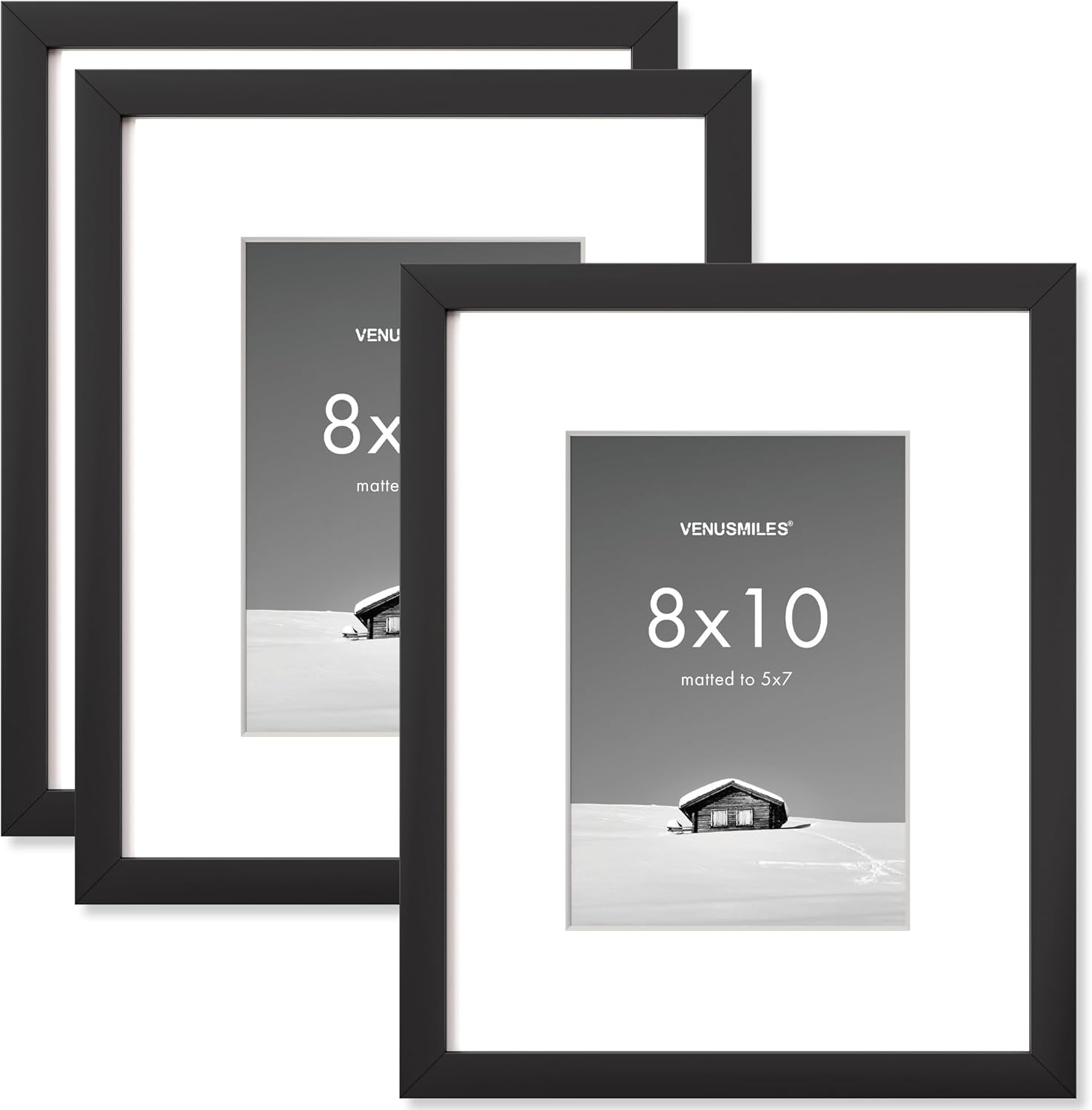 8x10 inch Picture Frame, 8x10 Photo Frames with 5x7 Removable Mat - High Definition Plexiglass - Vertical and Horizontal Display - Wall Hanging Frame - Black, 3 Pack