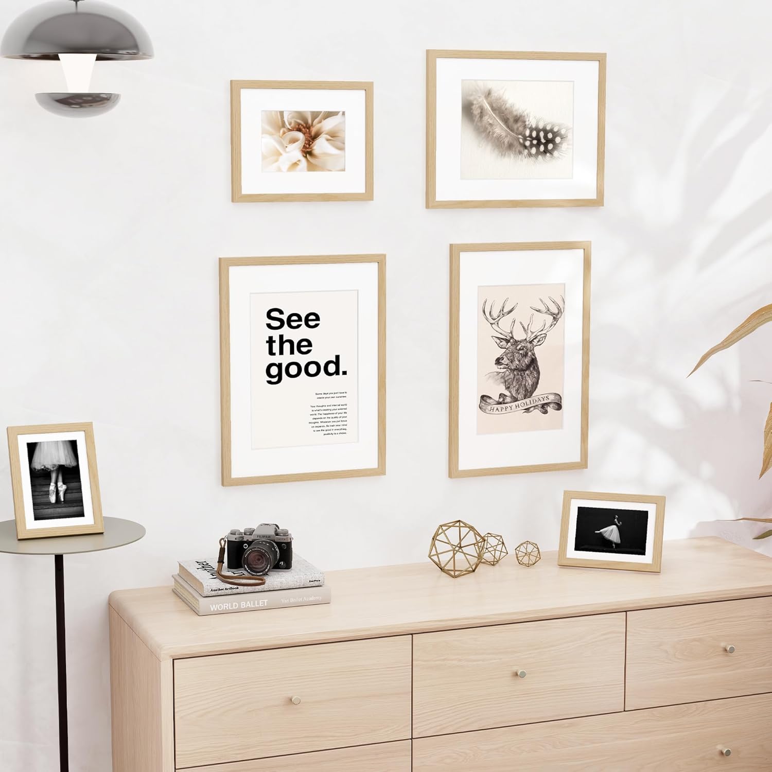 4x6 inch Picture Frame, 4x6 Photo Frames with 3.5x5 Removable Mat - High Definition Plexiglass - Vertical and Horizontal Display - Wall Hanging Frame - Oak Color, 12 Pack