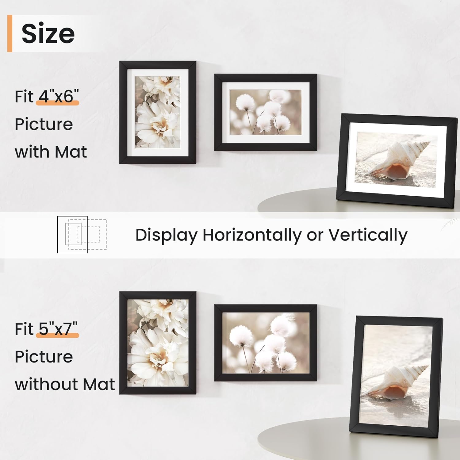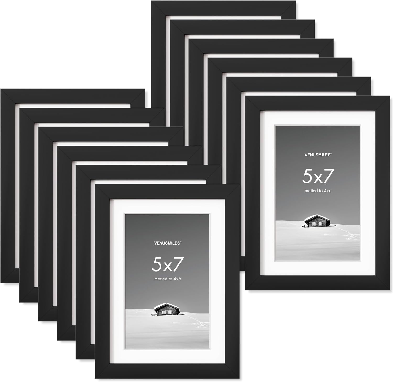 5x7 inch Picture Frame, 5x7 Photo Frames with 4x6 Removable Mat - High Definition Plexiglass - Vertical and Horizontal Display - Wall Hanging Frame - Black, 12 Pack