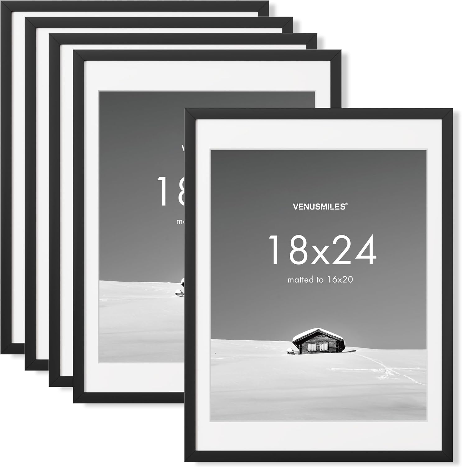 18x24 inch Picture Frame, 18x24 Photo Frames with 16x20 Removable Mat - High Definition Plexiglass - Vertical and Horizontal Display - Wall Hanging Poster Frame - Black, 5 Pack