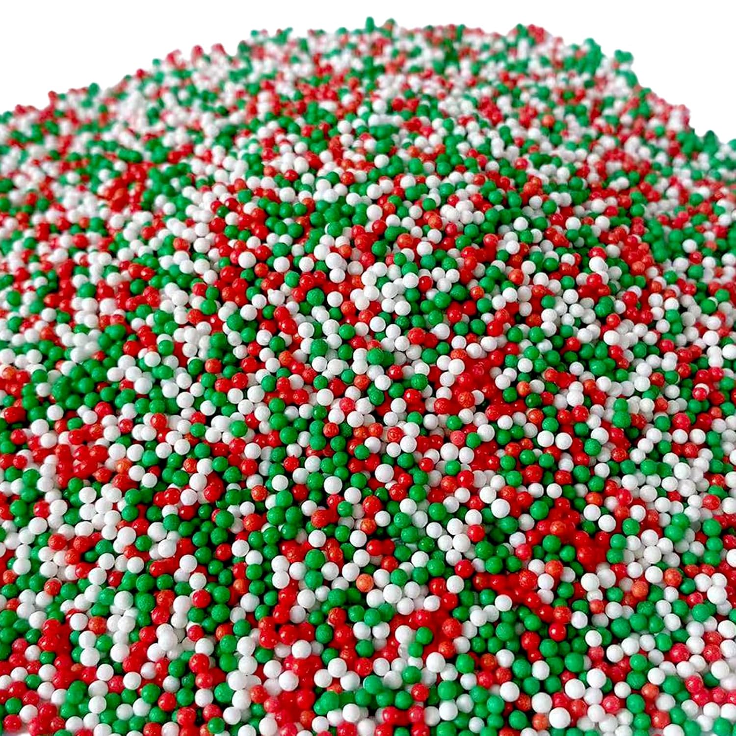 Sentovac Christmas Nonpareils Sprinkles Edible 2mm Mini Peals Red Green White Sprinkle for Cake Decorating Sugar Candy Cookie Cupcake Topper Baking Decorations Christmas Halloween Supplies
