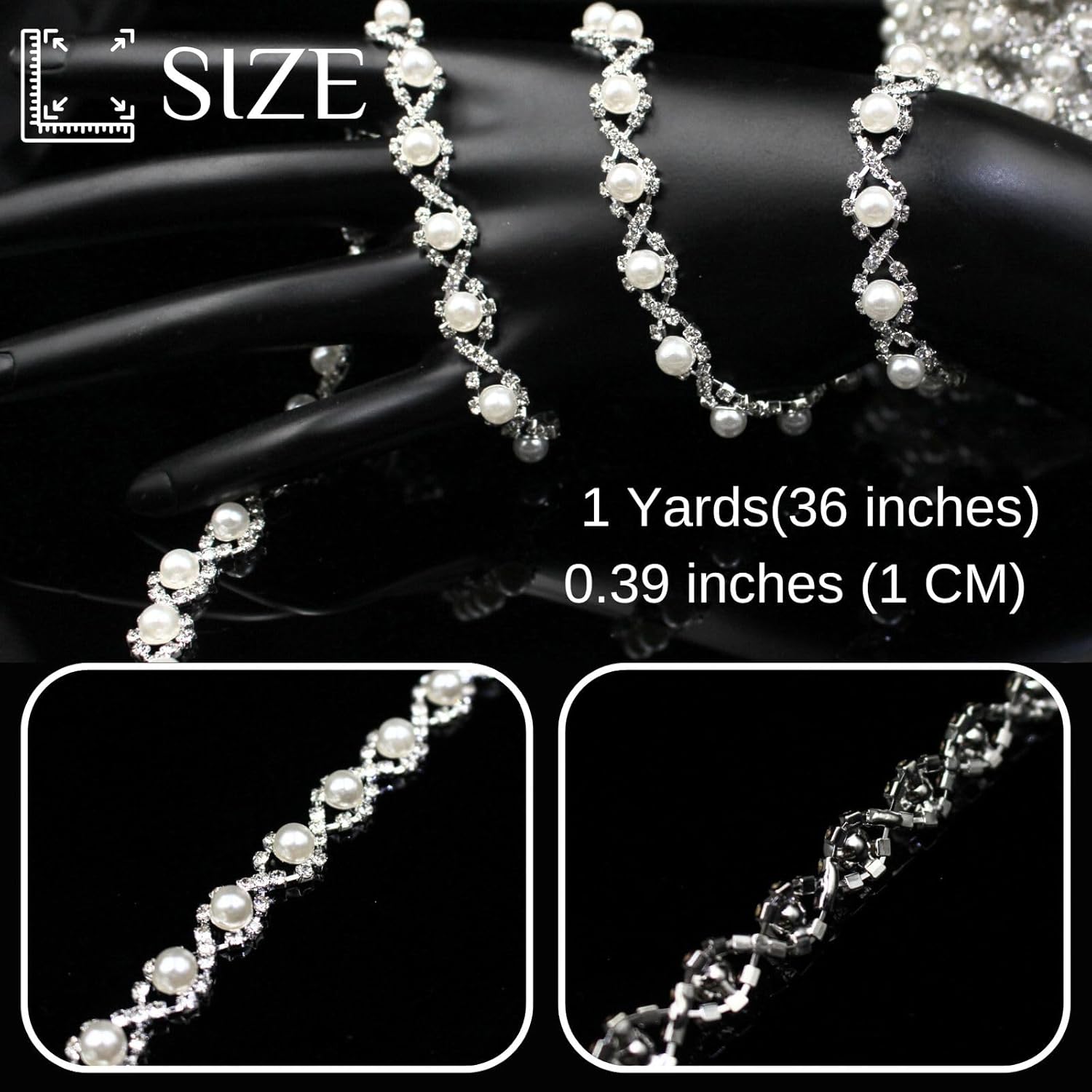 - Size: You will receive one roll of rhinestone chain, approximately 1 yard long and 0.39 inches (1 cm) wide, which is sufficient to meet your various decoration needs. You can also share it with friends or family. It's perfect for sewing trim and embellishments, and pearl garlands are also a great choice