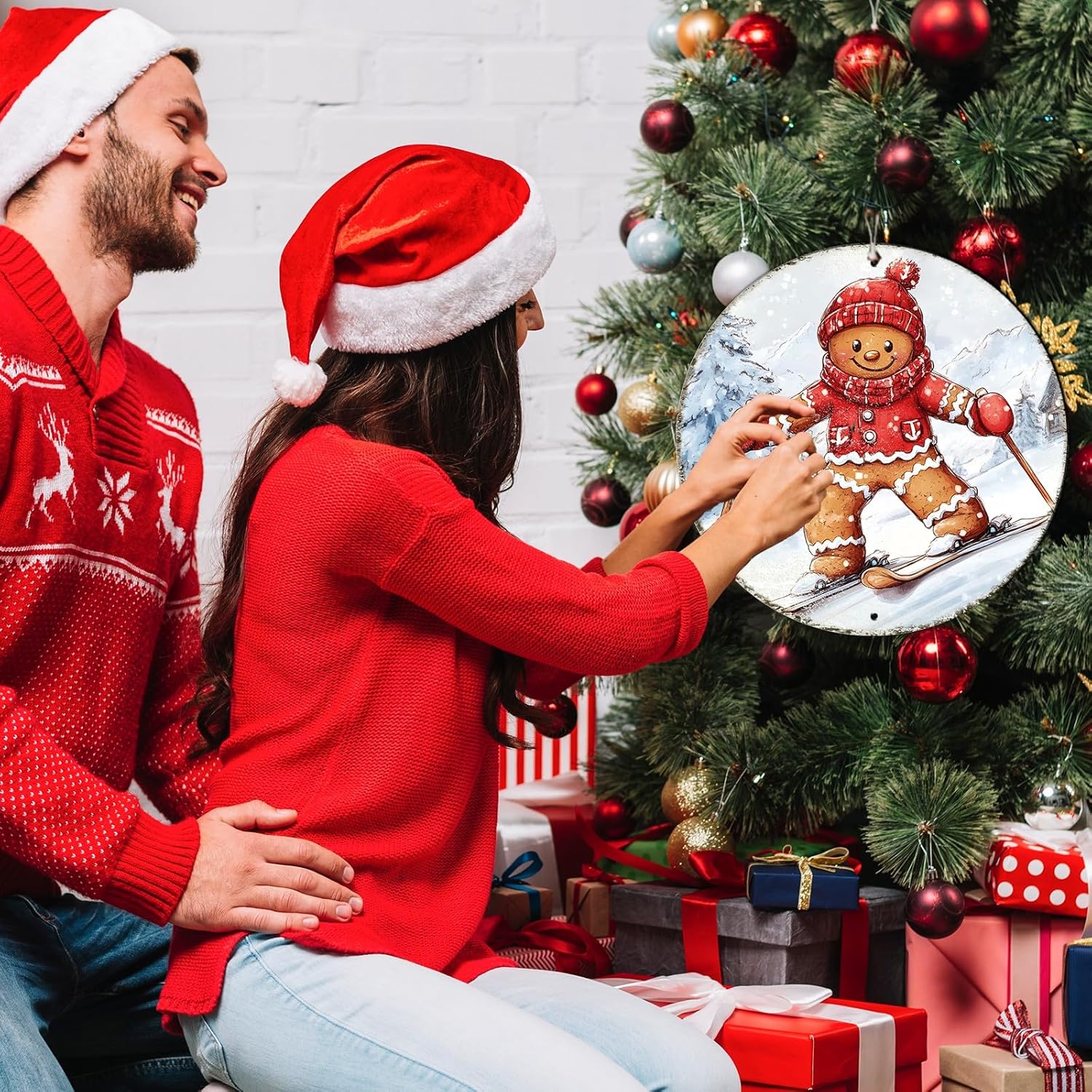 Round Gingerbread Man Ski Vintage Metal Sign Skiing Sign, Office Sign Home Décor Ski Lodge Décor Cabin Tin Sign 12 * 12 in