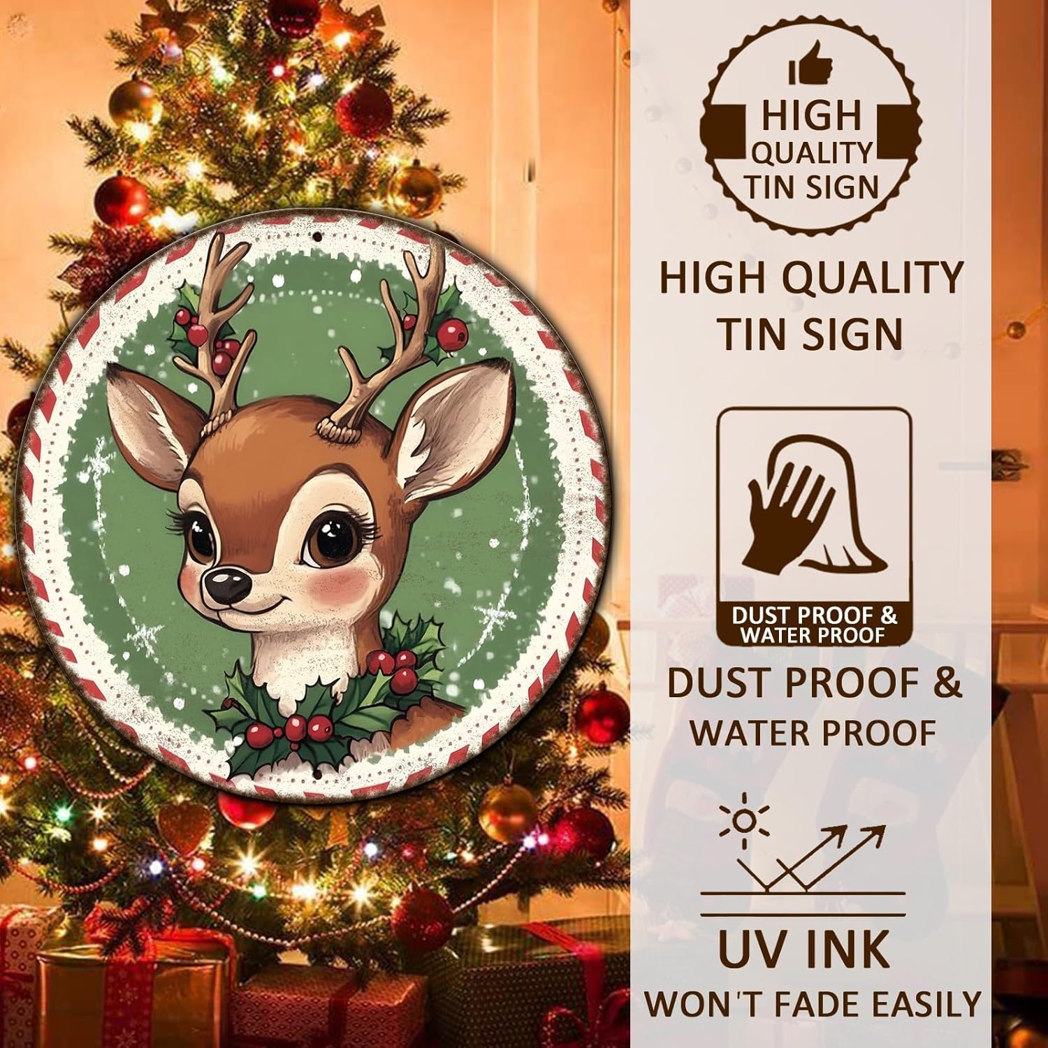 Round Retro Reindeer Metal Tin Sign - Vintage Christmas Decor for Home Coffee Wall - 8 * 8 in