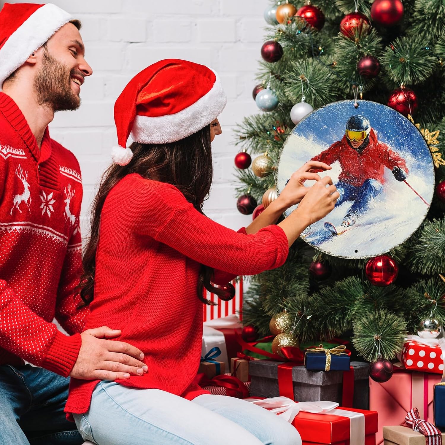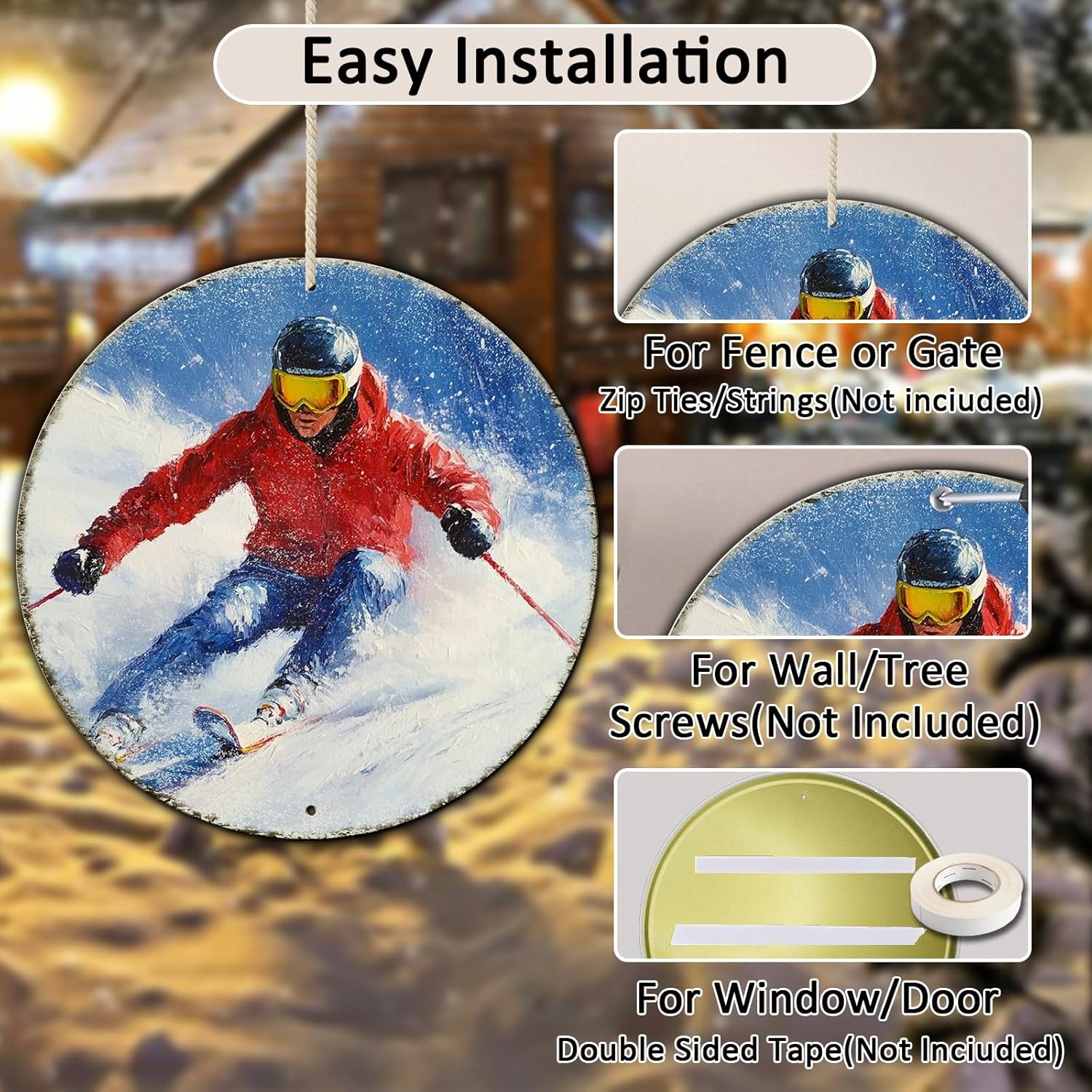 Round Ski Vintage Metal Sign Skiing Sign, Office Sign Home Décor Ski Lodge Décor Cabin Tin Sign 12 * 12 in