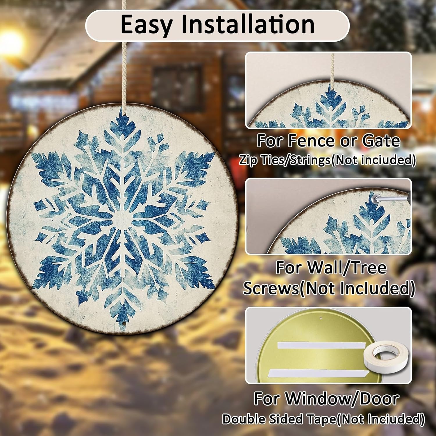 Round Christmas Metal Tin Sign Vintage Snowflake Signs Winter Christmas Sign Retro Wall Decor Tin Sign Funny Decorations for Home Cafes Office Store Pubs Tin Sign 12 * 12 in