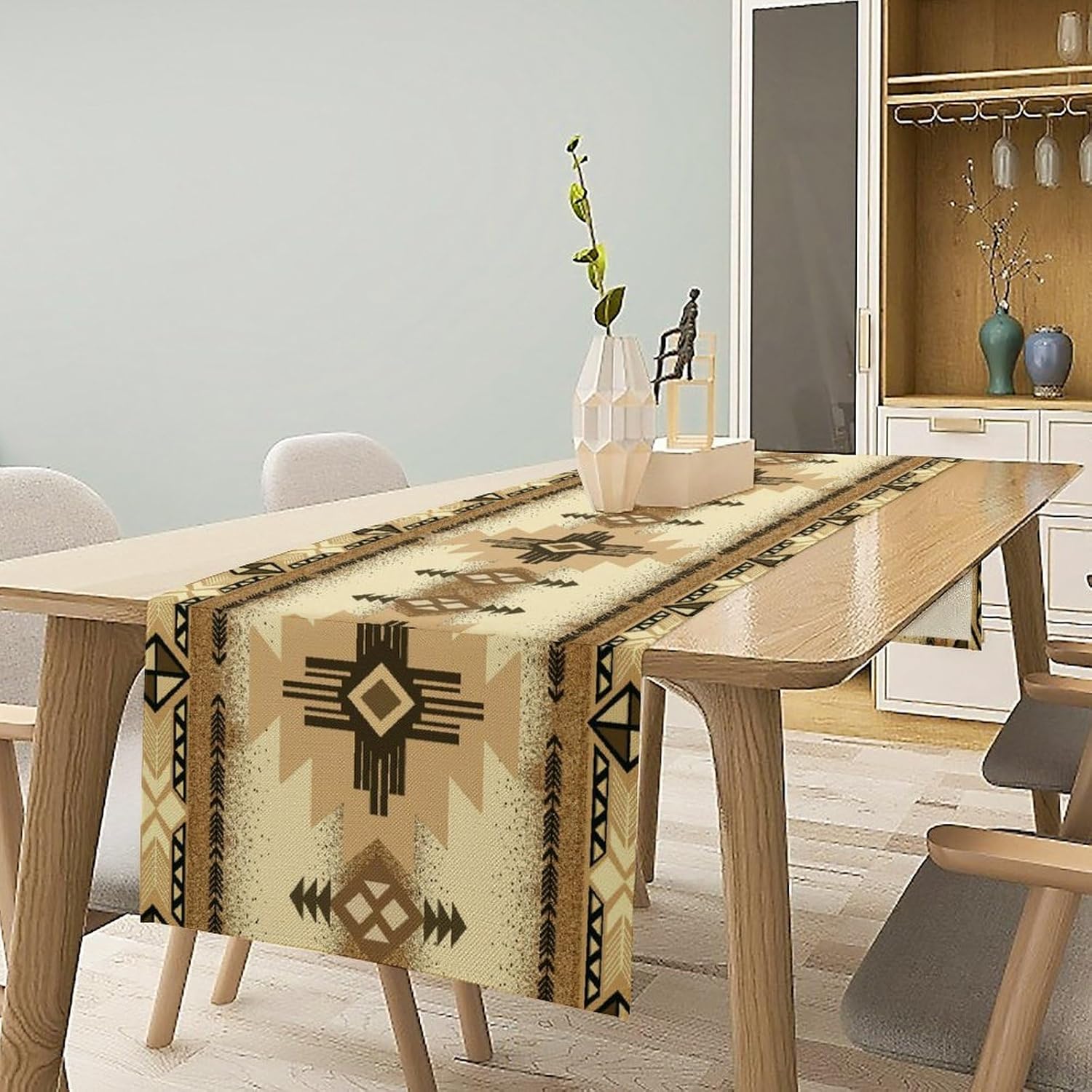 Aztec Table Runner Southwestern Ethnic Style Geometric Navajo Tribe Abstract Pattern Vintage Rustic Table Dinner Table Runner 13x70 Inch