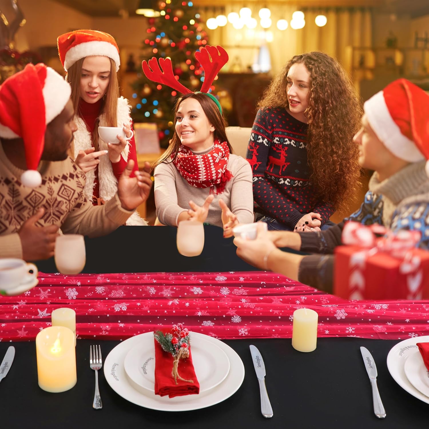 - Festive Decoration: Red and white snow table runner perfect for decorating christmas and winter dining table, fireplace, coffee table, chair covers, adding an cozy touch to your holiday decor, creating a warm and inviting atmosphere