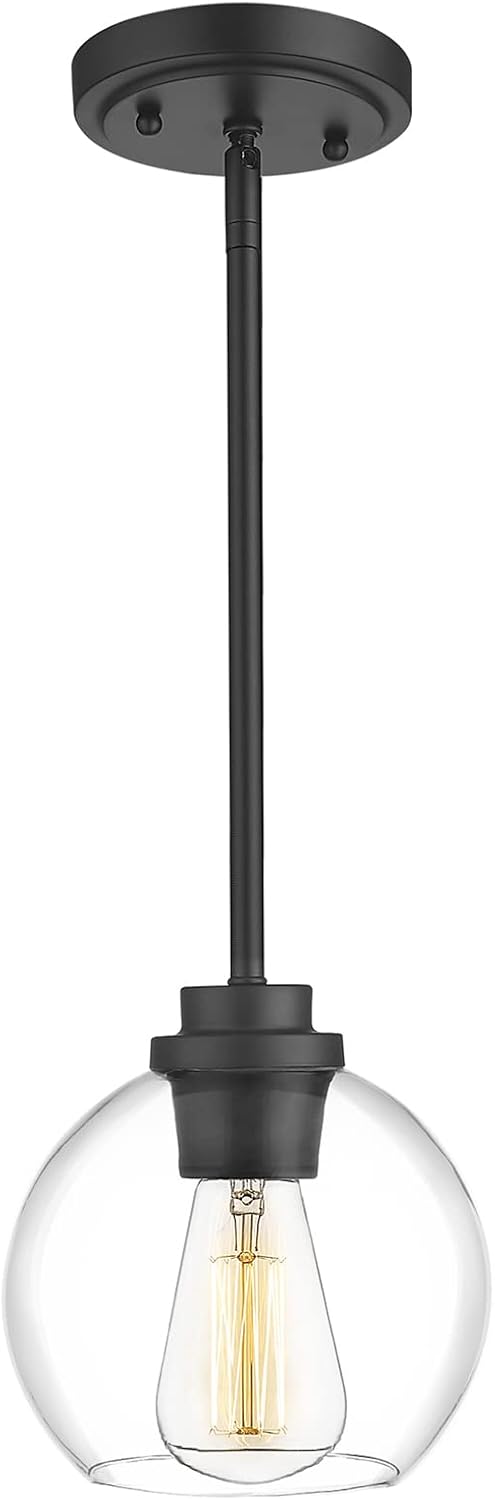 Pendant Light Fixtures,7 Inch Globe Black Pendant Lights Kitchen Island with Clear Glass, Modern Hanging Lights for Kitchen Island, Dining Room, Bedroom, Hallway, Farmhouse,1 Pack