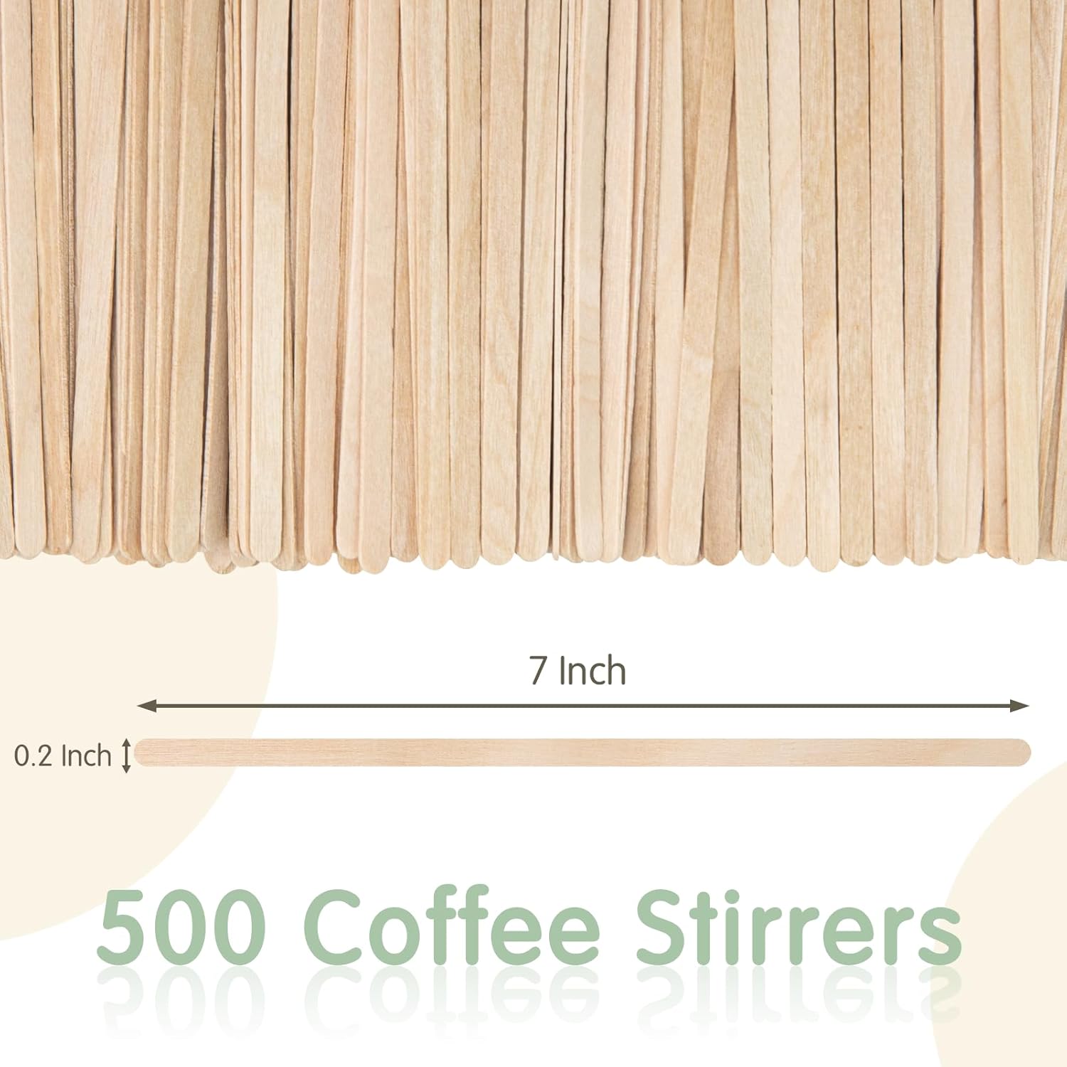 WISYOK 500 PCS Coffee Stirrers, 7 Inch Premium Birch Wood Sticks, Smooth Round Ends, Splinter-Free Disposable Stir Sticks for Coffee, Cocktails, Office, Home Use
