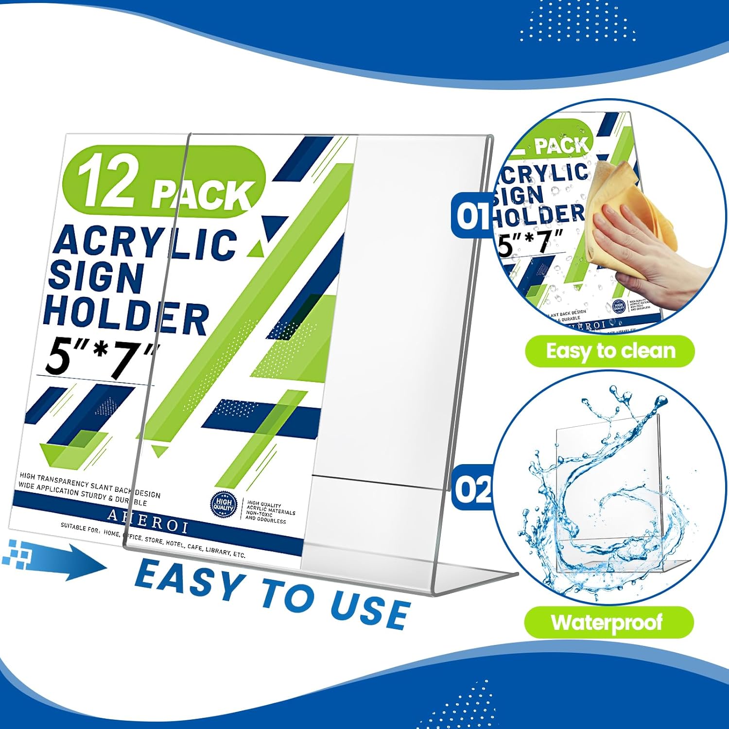 Aheroi 12Pcs Acrylic Sign Holder, 5x7 Clear Sign Holders, L-shape Table Sign Holders Paper Stand, Plastic Sign Holder Standing, Paper Display Stand for Menu Document Display, Activities Supplies