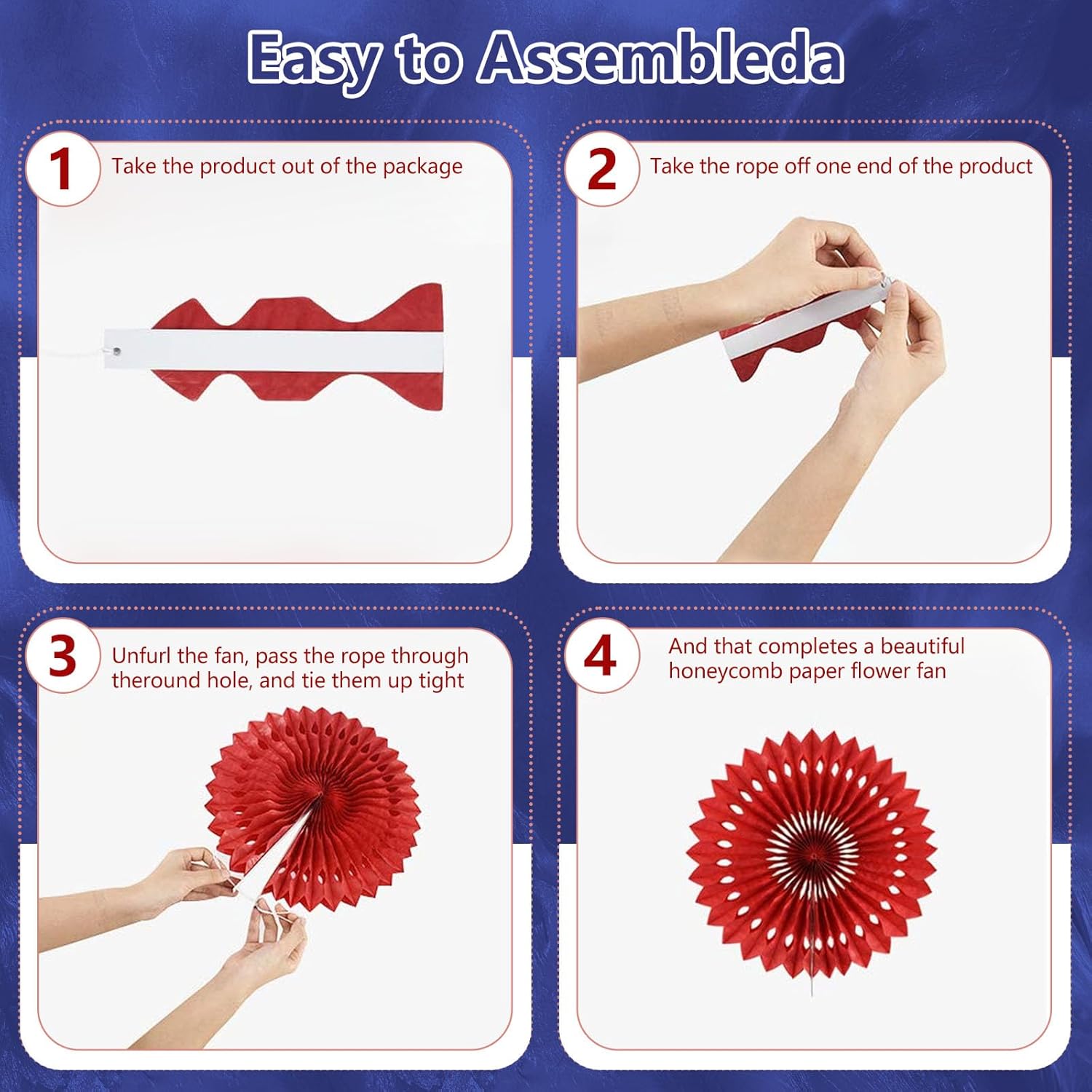 - 【Hanging paper fan set】Paper fan set includes 20 paper fans of different sizes, among which the paper flower fan size is 14 inches * 3, 12 inches * 5, 8 inches * 6, and 6 inches*6.