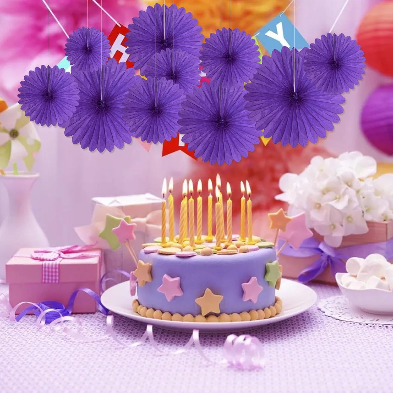 20 Pcs Deep Purple Hanging Paper Fan, Hanging Honeycomb Round Paper Fans for Weddings, Birthdays, Easter, Baby Showers, Classroom, Events Ceiling Party Supplies Decorations