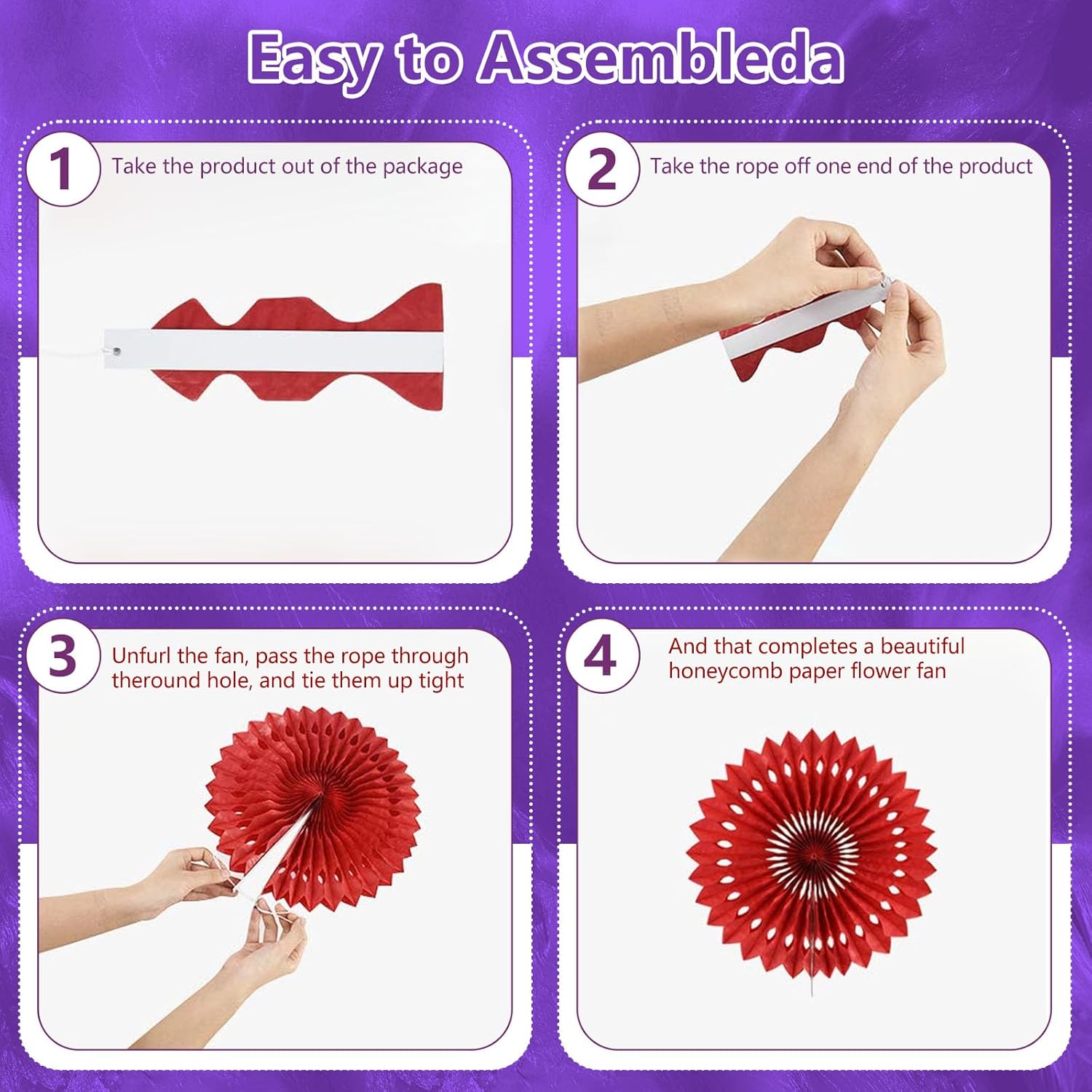 - 【Hanging paper fan set】Paper fan set includes 20 paper fans of different sizes, among which the paper flower fan size is 14 inches * 3, 12 inches * 5, 8 inches * 6, and 6 inches*6.