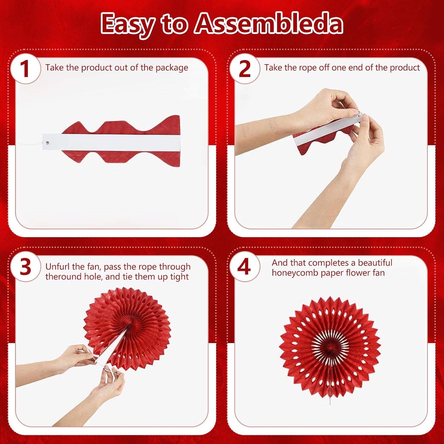 - 【Hanging paper fan set】Paper fan set includes 18 paper fans of different sizes, among which the paper flower fan size is 14 inches * 3, 12 inches * 5, 8 inches * 6, and 6 inches*6.