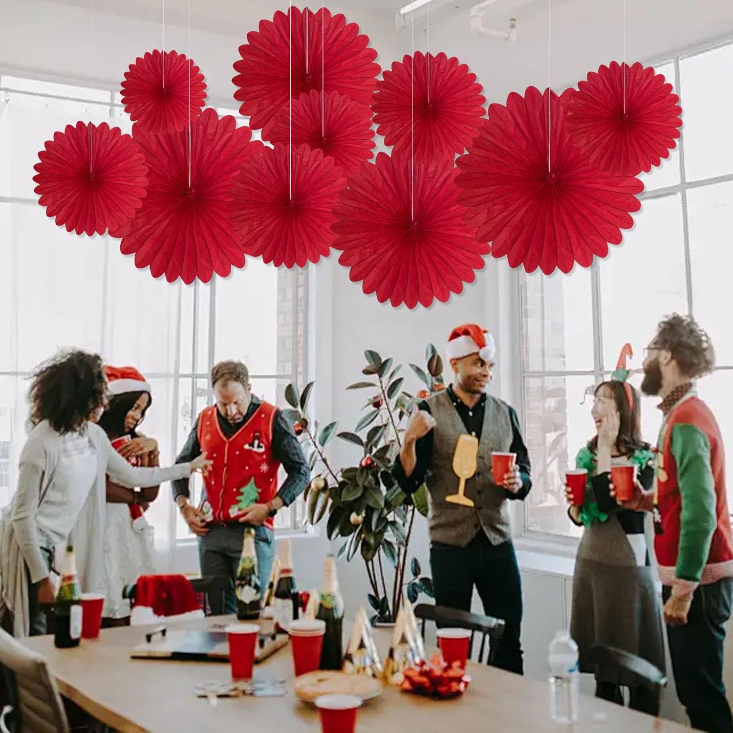 20 Pcs Red Hanging Paper Fan, Hanging Honeycomb Round Paper Fans for Weddings, Birthdays, Christmas, Baby Showers, Classroom, Events Ceiling Party Supplies Decorations