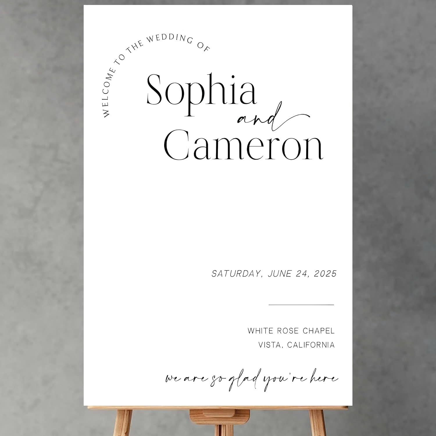 - Welcome your guests to your wedding in a warm and memorable way with Personalized Plastic Wedding Welcome Sign. This product is designed to create personal interest and an impressive welcome for everyone attending this memorable event.