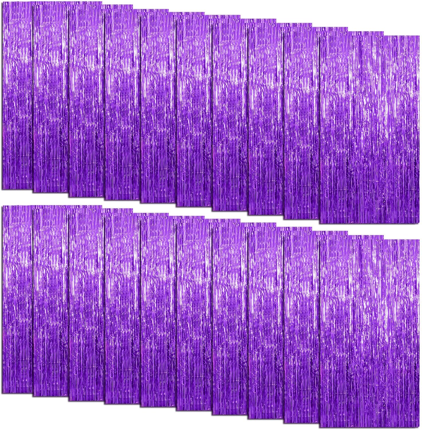 20 Pack Foil Curtain Backdrop Purple Metallic Tinsel Foil Fringe Curtains Photo Booth Props for Birthday Wedding Engagement Baby Shower Bachelorette Christmas Holiday Celebration Party Decorations
