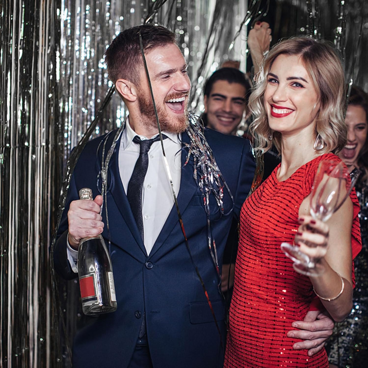 - Celebration Party Decorations: You can use this shiny gorgeous tinsel foil fringe background to decorate your celebration party. Hang them on a carpeted end or wall as a backdrop,or it could be one entrance to the party. You can paired with an LED light, balloons, banners and various photo props on this backdrop. All the guests who come to bless you will feel your love and beauty and was remembered for having a great party!