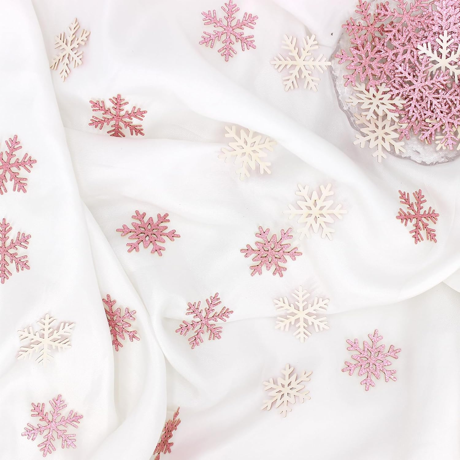 - Premium quality,proper size.The small snowflakes for crafts are made from premium glittery paper card and well cut,the color is super shine.The pink snowflake decor size is 1.2inch,perfect for holiday crafts,recommend as table decorations or craft supply.