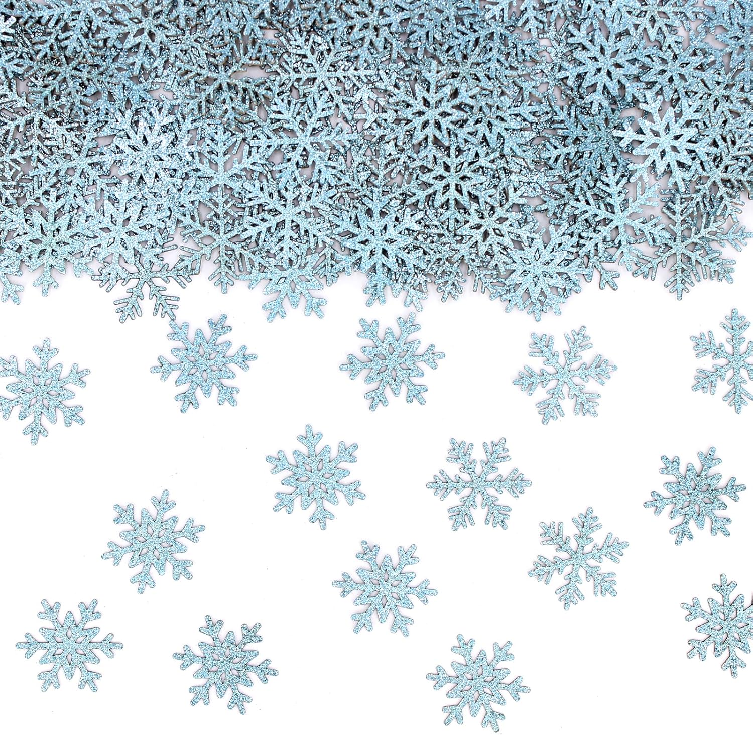 - Premium quality,proper size.The small snowflakes for crafts are made from premium glittery paper card and well cut,the blue color confetti is super shine.The snowflake decor size is 1.2inch,perfect for holiday crafts,recommend as table decorations or craft supply.