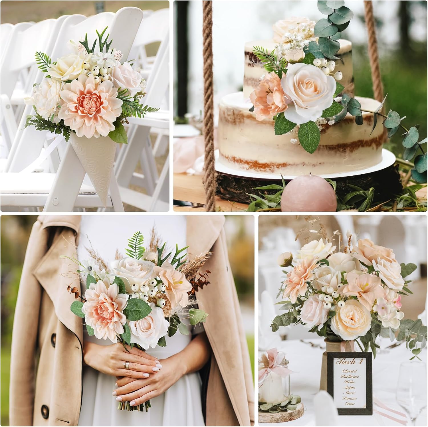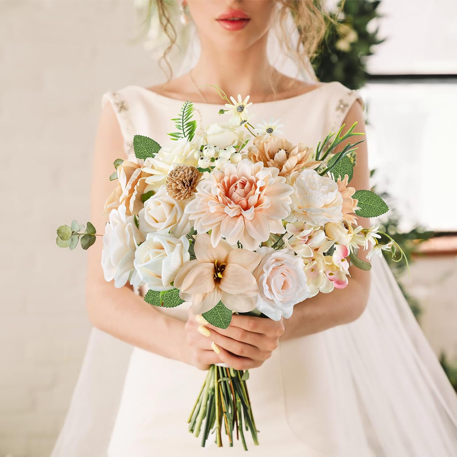 AmyHomie Nude Color Artificial Flowers Combo Silk Mix Peony Rose Fake Flowers w/Stem for DIY Wedding Bouquets Centerpieces Arrangements Table Fall Decor Party Bridal Baby Shower Home Decorations