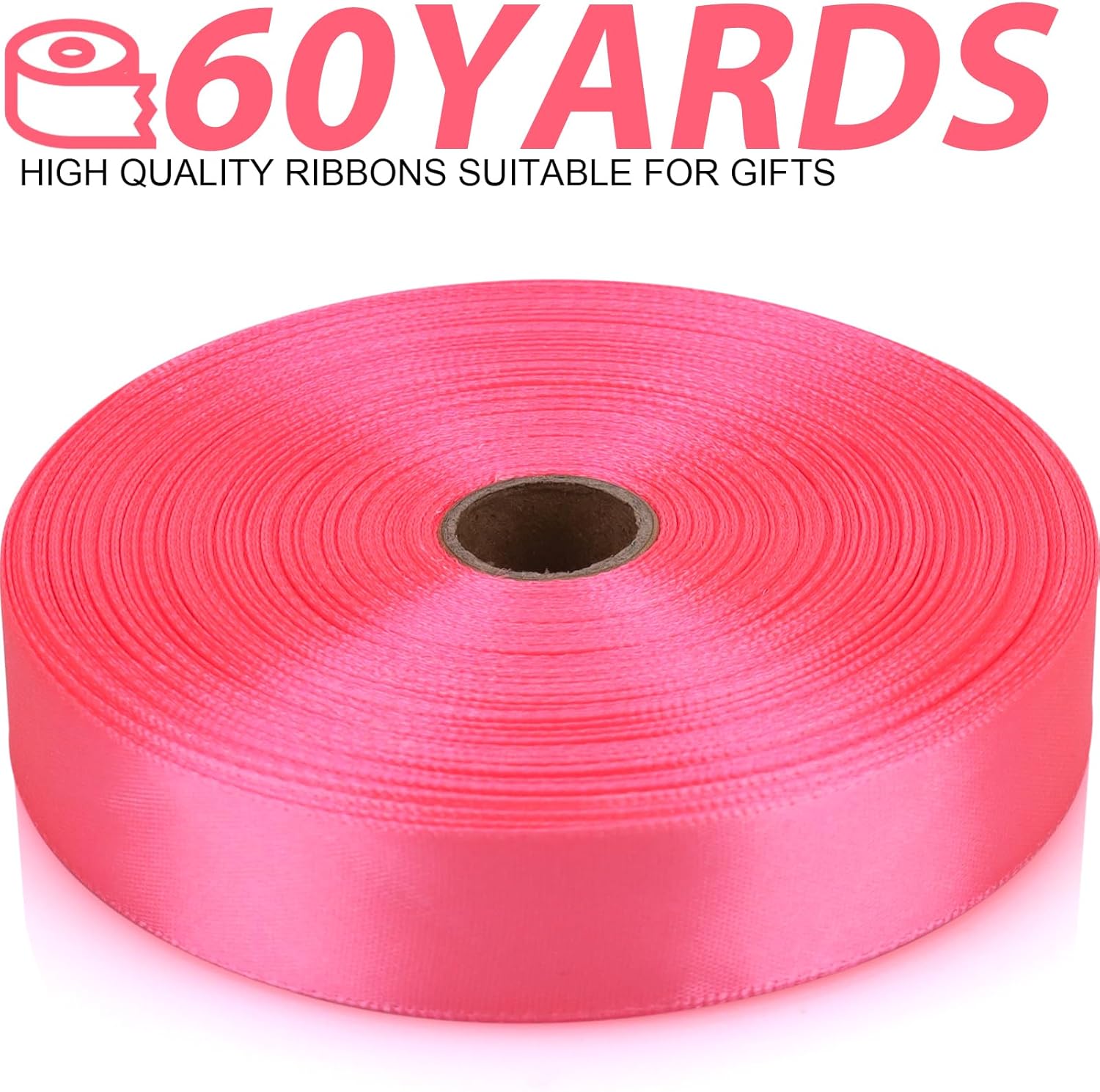 Pink Ribbon 7/8 Inch 60 Yards Satin Craft Ribbon - Polyester, Multiple Occasions, Solid Color, 60 Yards