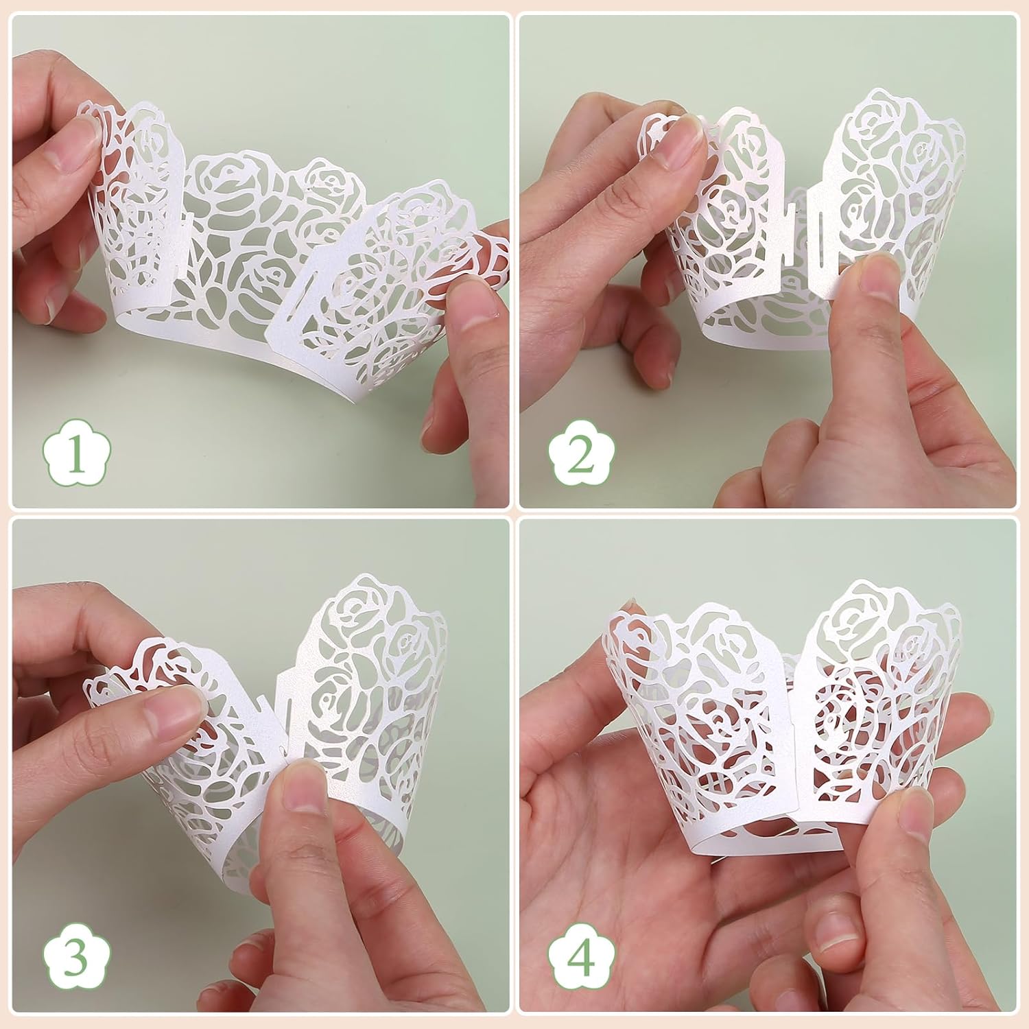 GWHOLE White Cupcake Wrappers, 50pcs Cupcake Liners with Rose Design Laser Cut Liners for Wedding Birthday Baby Shower Party Decorations Fancy Small Cupcake Decorations for Regular Cupcak