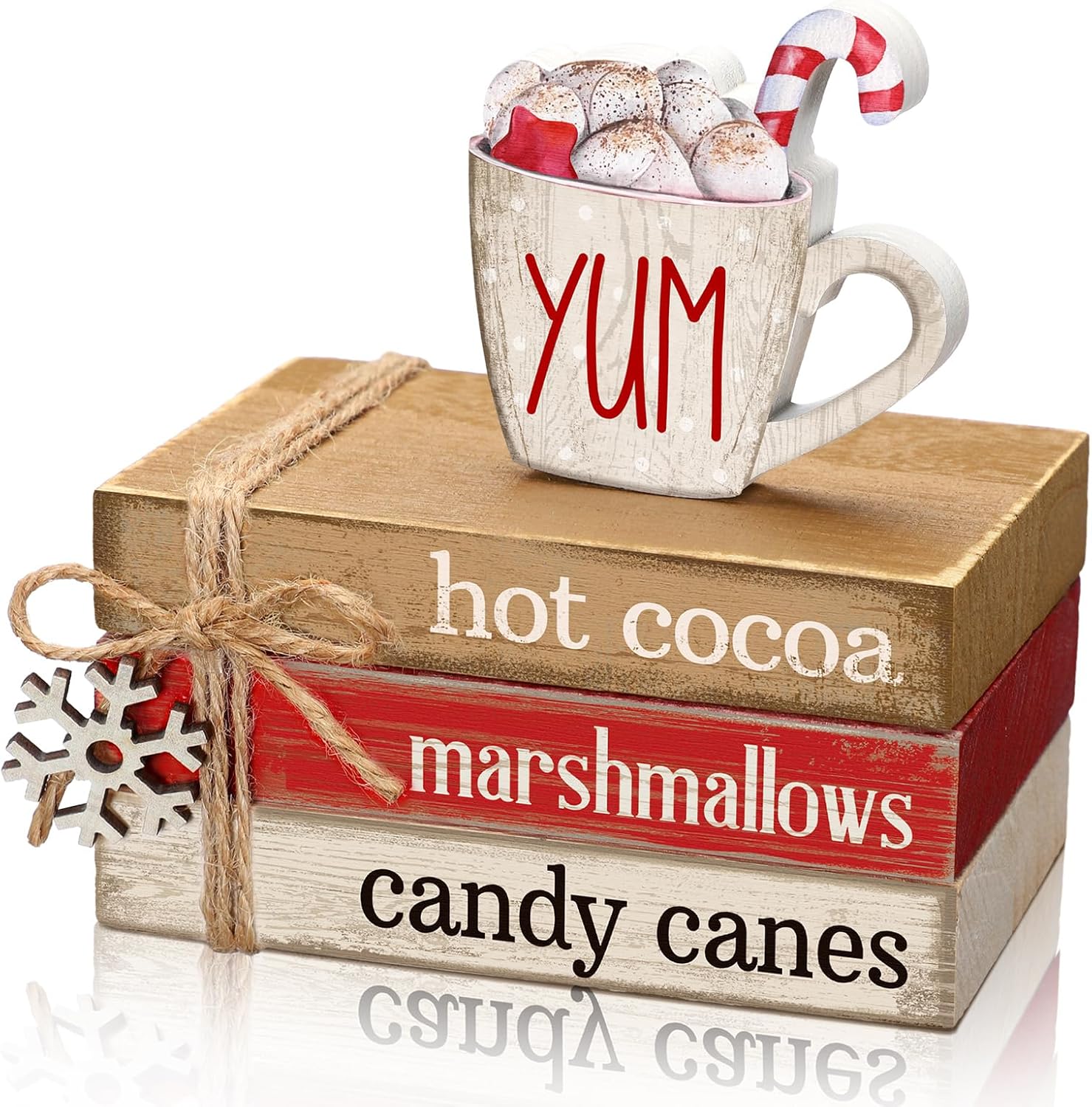 4 Pcs Christmas Table Decorations Winter Snowflake Tiered Tray Decorations Decorative Mini Wooden Books Subject Signs Block Centerpiece for Office Tabletop Shelf Housewarming Gifts