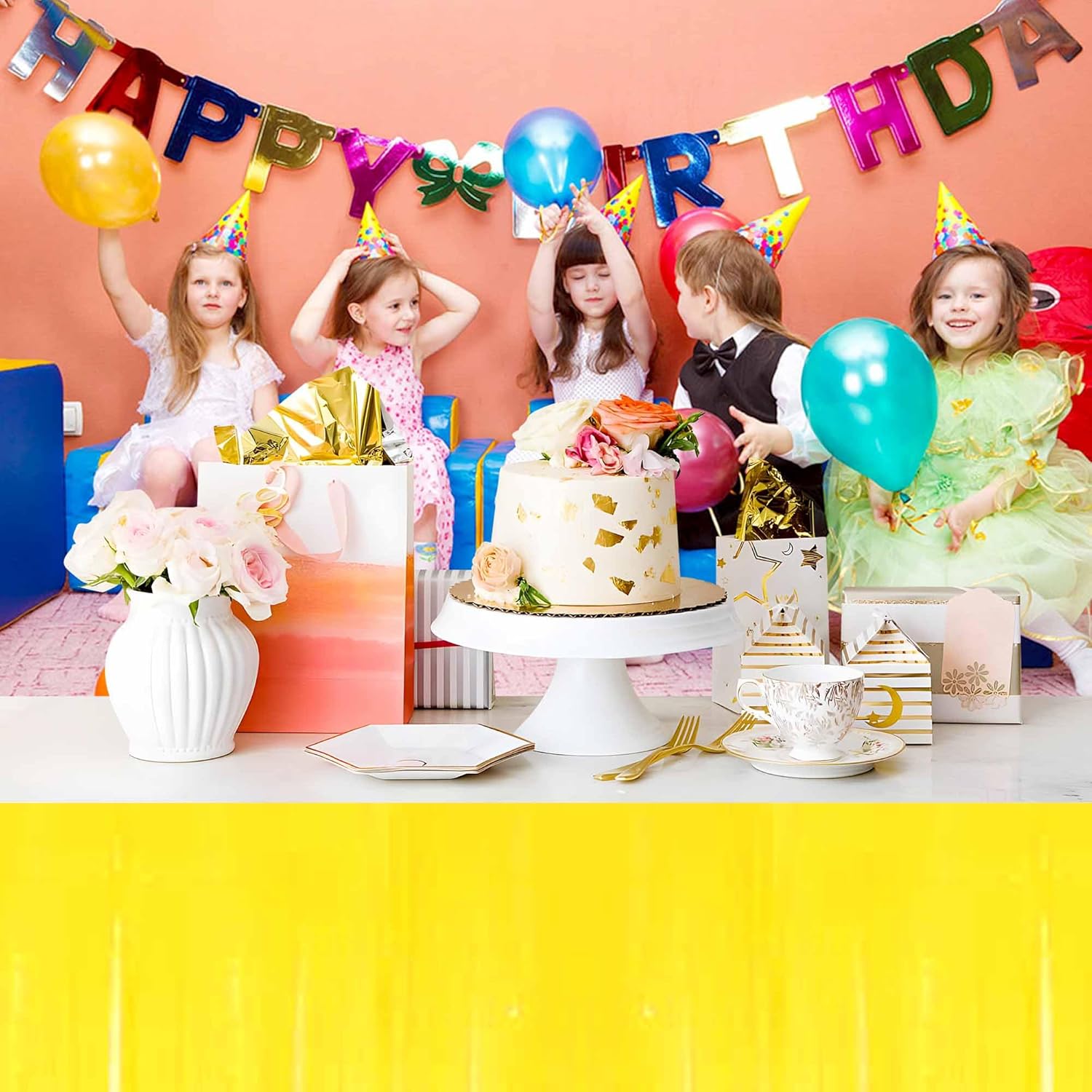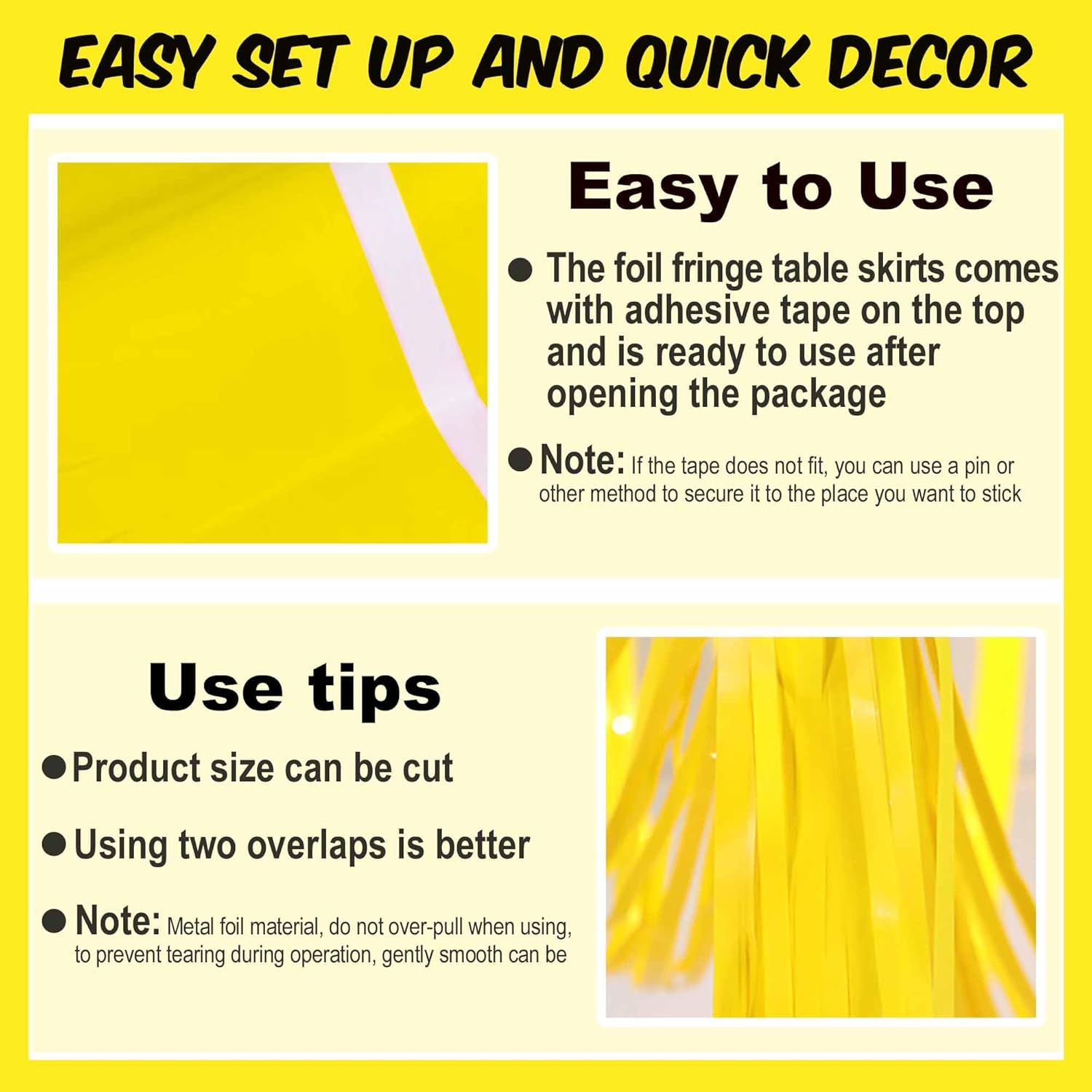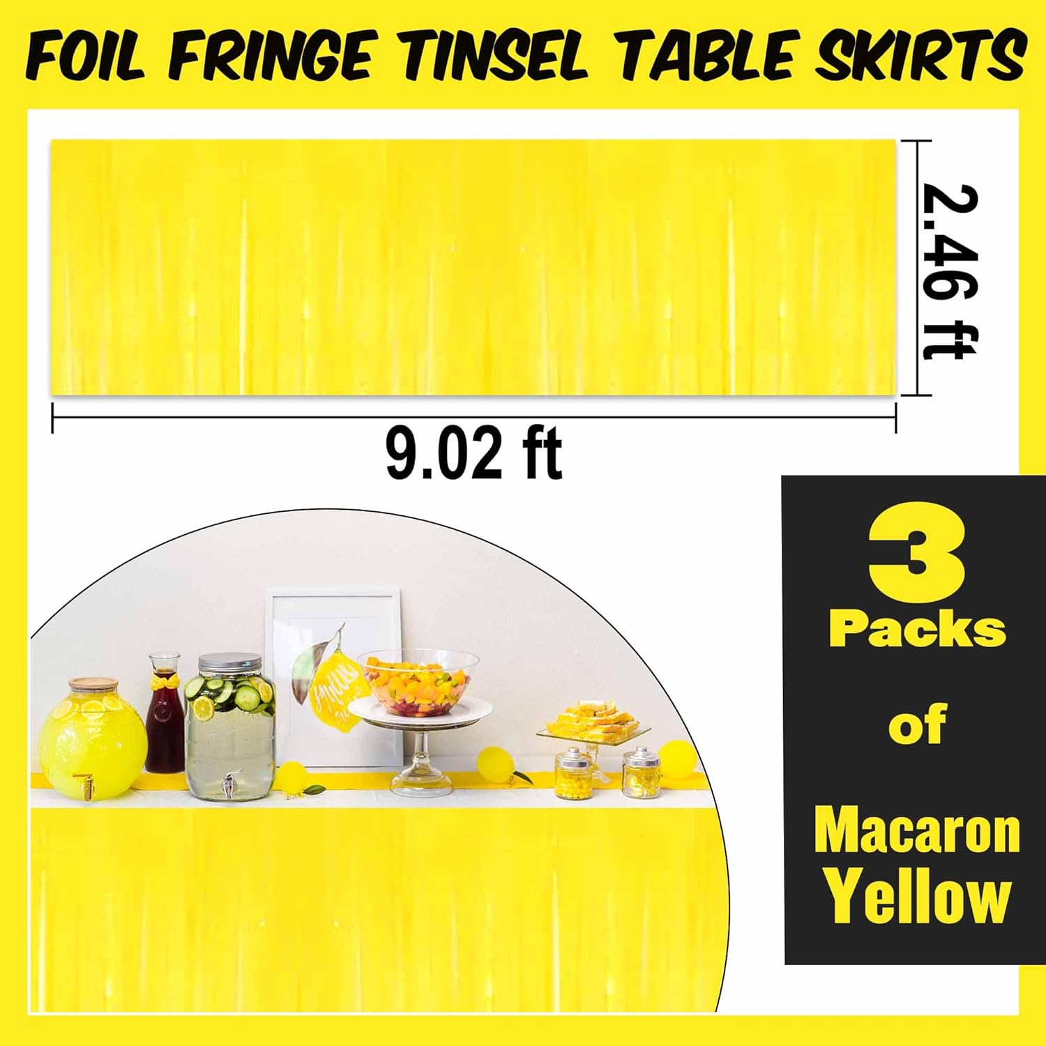 3 Pack 29 x108 Inch Macaron Yellow Foil Fringe Table Skirts Metallic Banner for Tinsel Streamer Garland Backdrop for Parade Floats Mother's Day, Graduate, Birthday, Wedding Party Decoration
