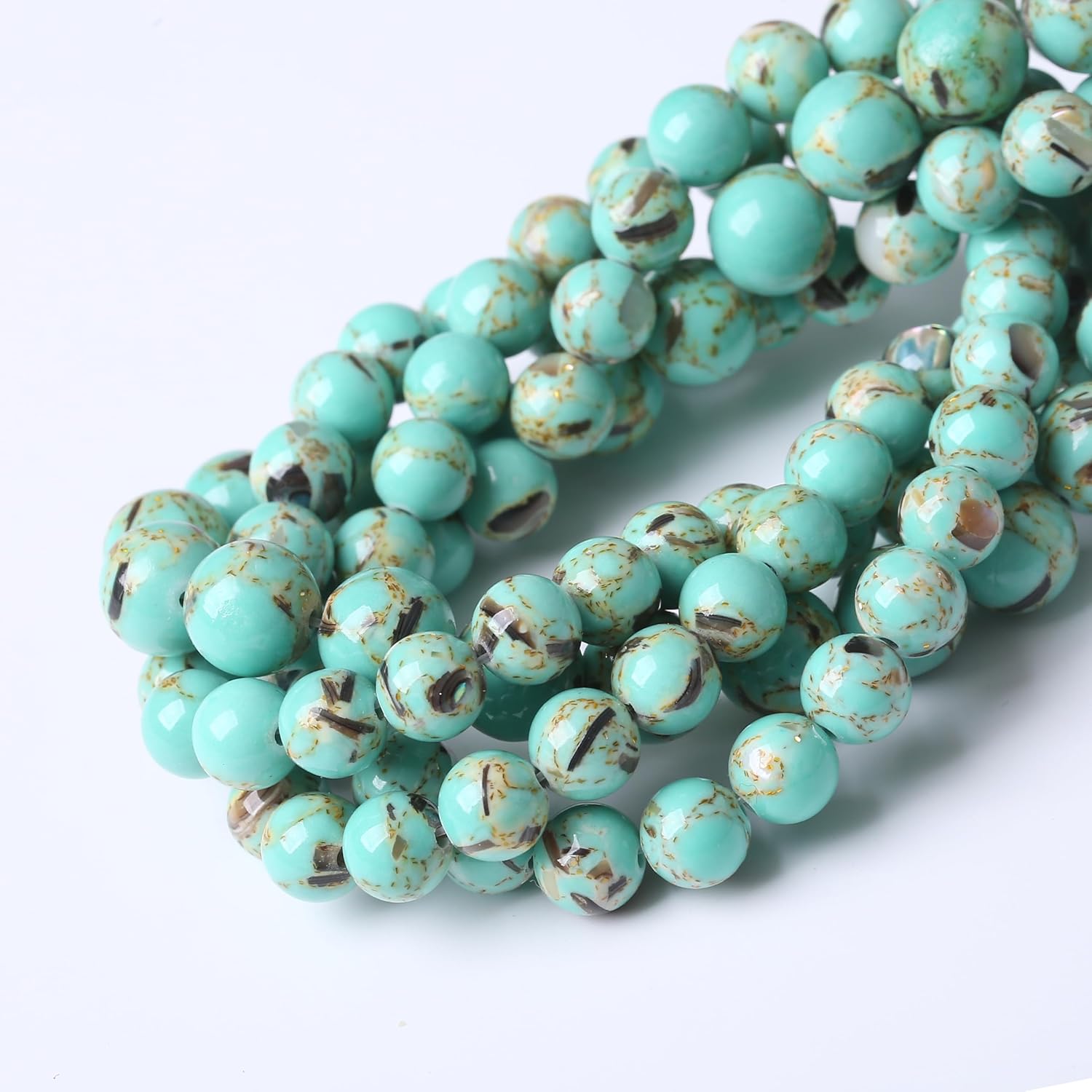 Gold Wire Turquoisee Stone Beads Gemstone Round Crystal Energy Jade Beads Stone Beads for Jewelry Making DIY Bracelet Necklace Jewelry Making 1 Strand 15.5inch 4MM