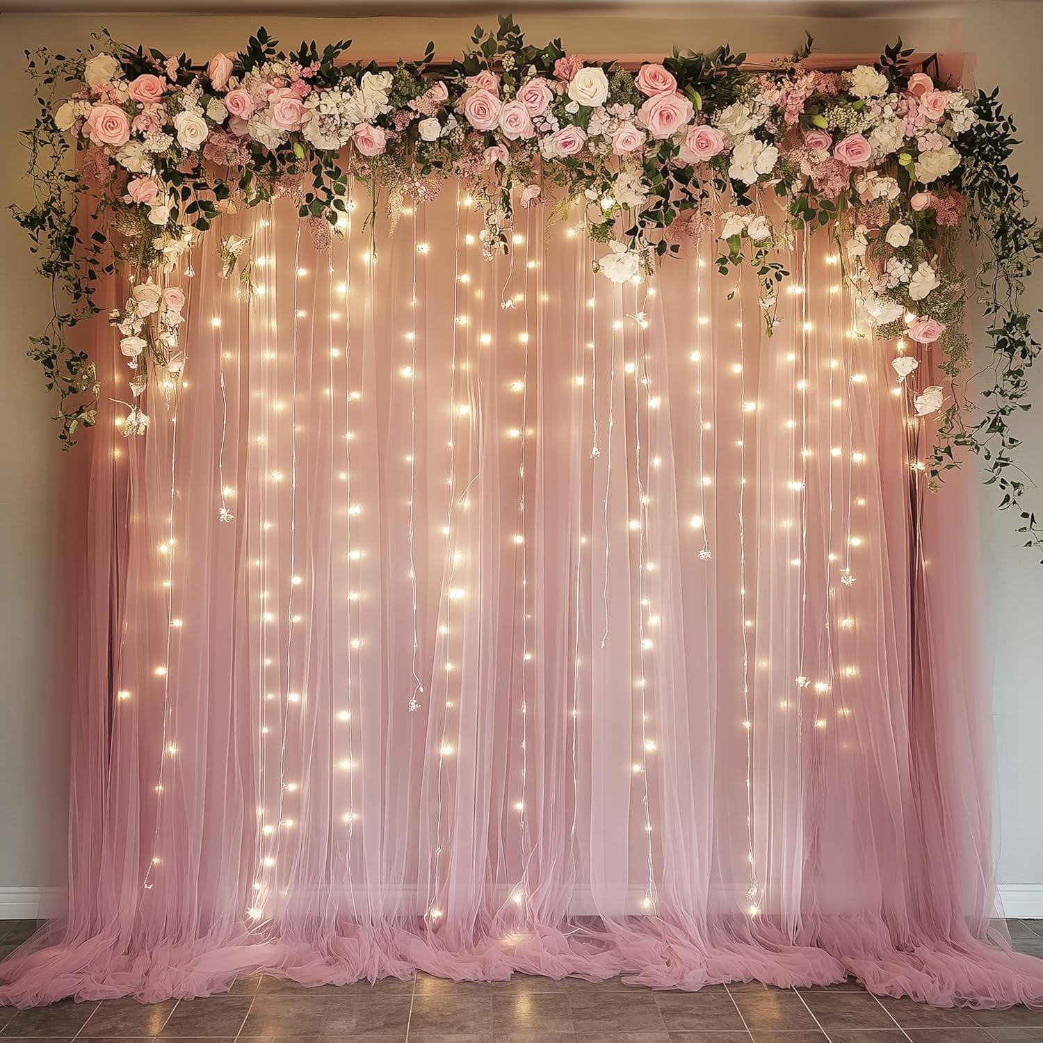 - Tulle Curtains for Decorations: Tulle backdrop curtain with lights string is transparent and breathable, with soft lighting to create a hazy backdrop stand decorations. This string lights have different settings so you can use solid lights for photos and blinking ones for other times. Fomcet curtian backdrop is recommended for anyone who wants a magical, romantic vibe.
