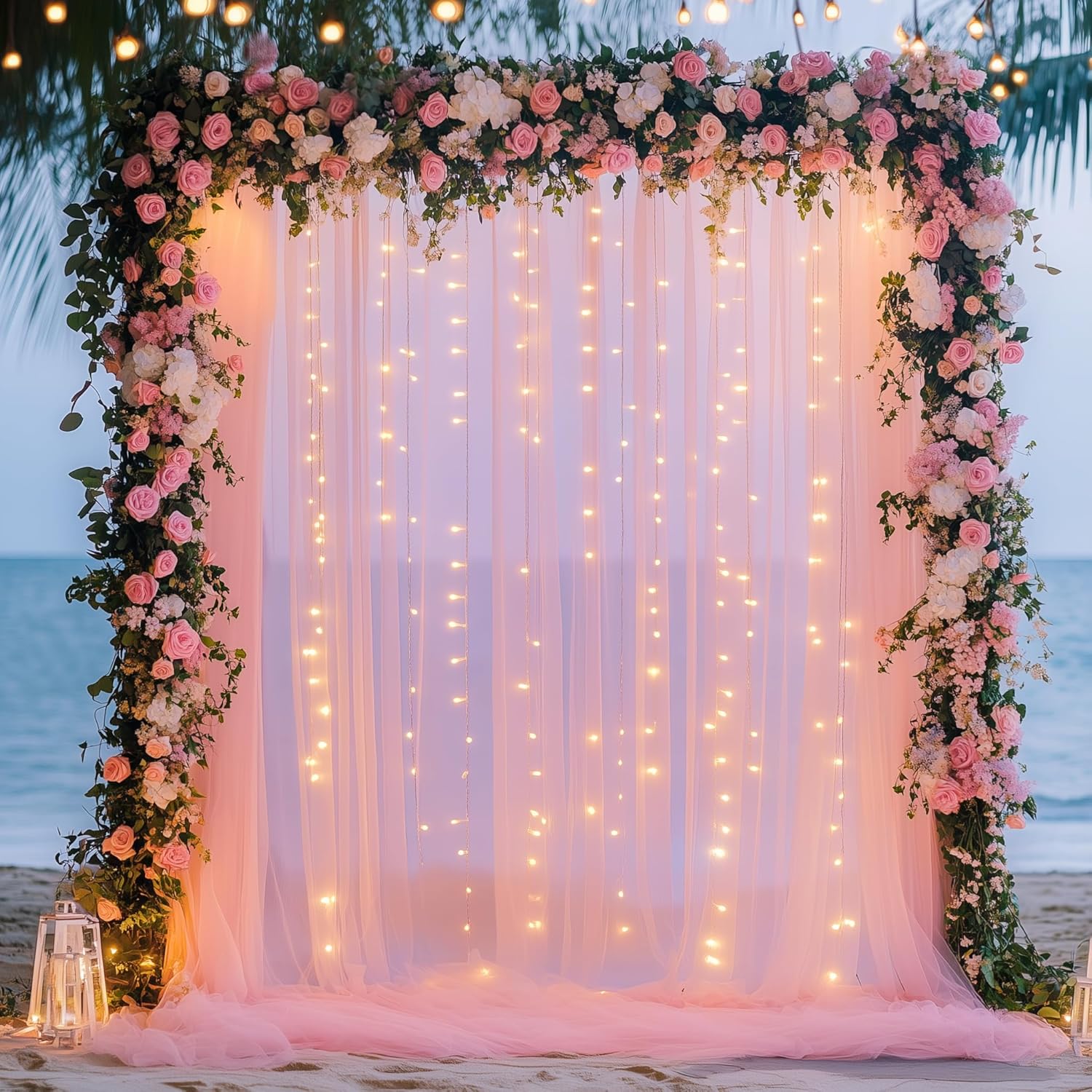 - Tulle Curtains for Decorations: Tulle backdrop curtain with lights string is transparent and breathable, with soft lighting to create a hazy backdrop stand decorations. This string lights have different settings so you can use solid lights for photos and blinking ones for other times. Fomcet curtian backdrop is recommended for anyone who wants a magical, romantic vibe.