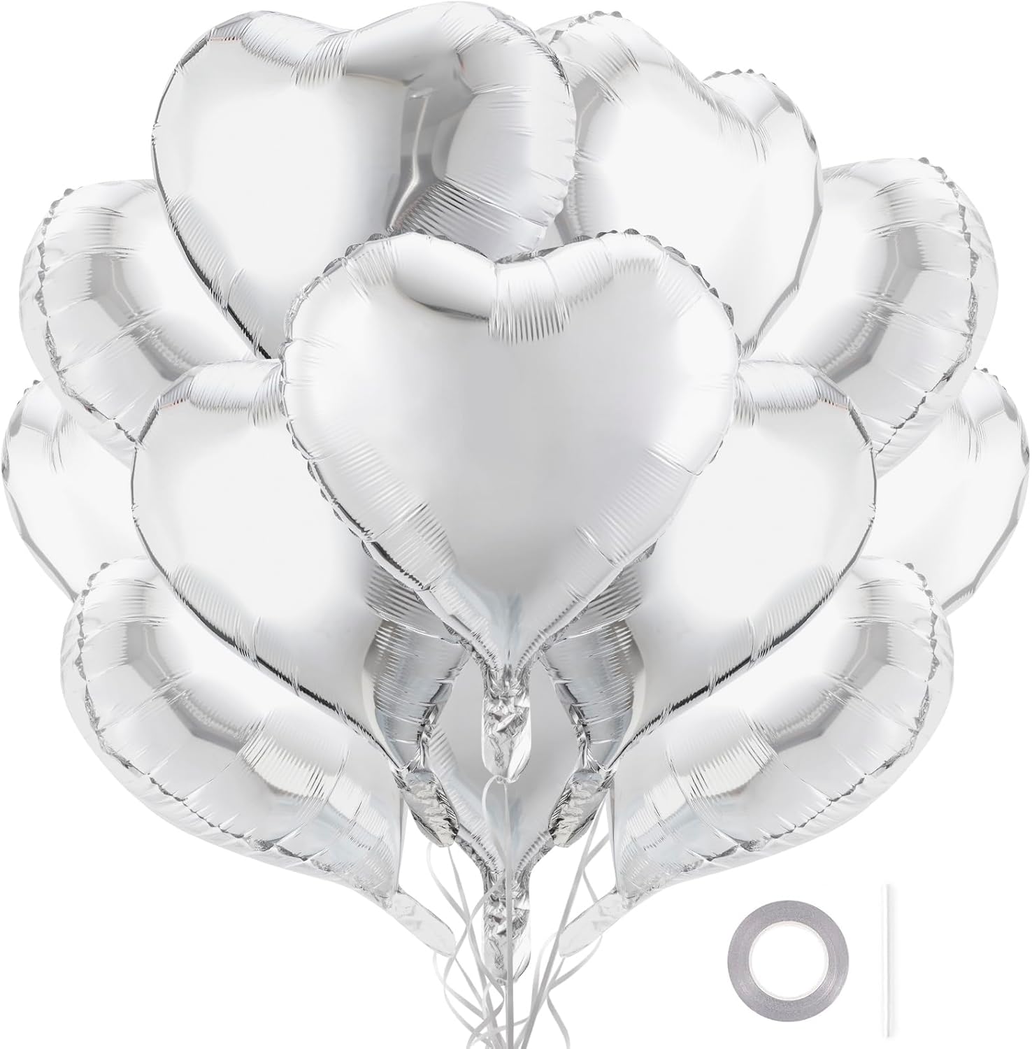 12Pcs Silver Heart Balloons, 18 Inch Silver Heart Shape Balloons Love Balloons Valentine Balloons for for Valentines Day Wedding Brithday Decorations
