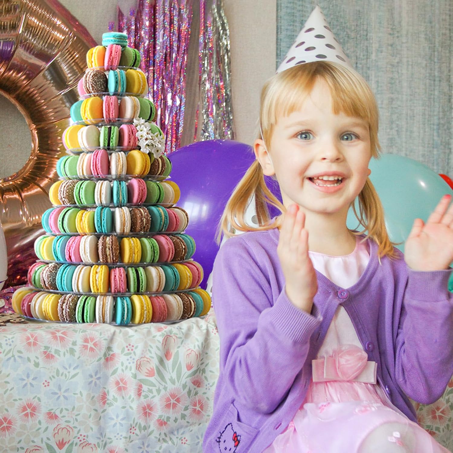 - 【REUSABLE DESSERT STAND】This macaron tower stand is made of high quality plastic material with transparent color, the surface of the macarons display tower is very flat and has no bumps. This macaron stand display is hand washable and reusable (dishwasher not recommended)