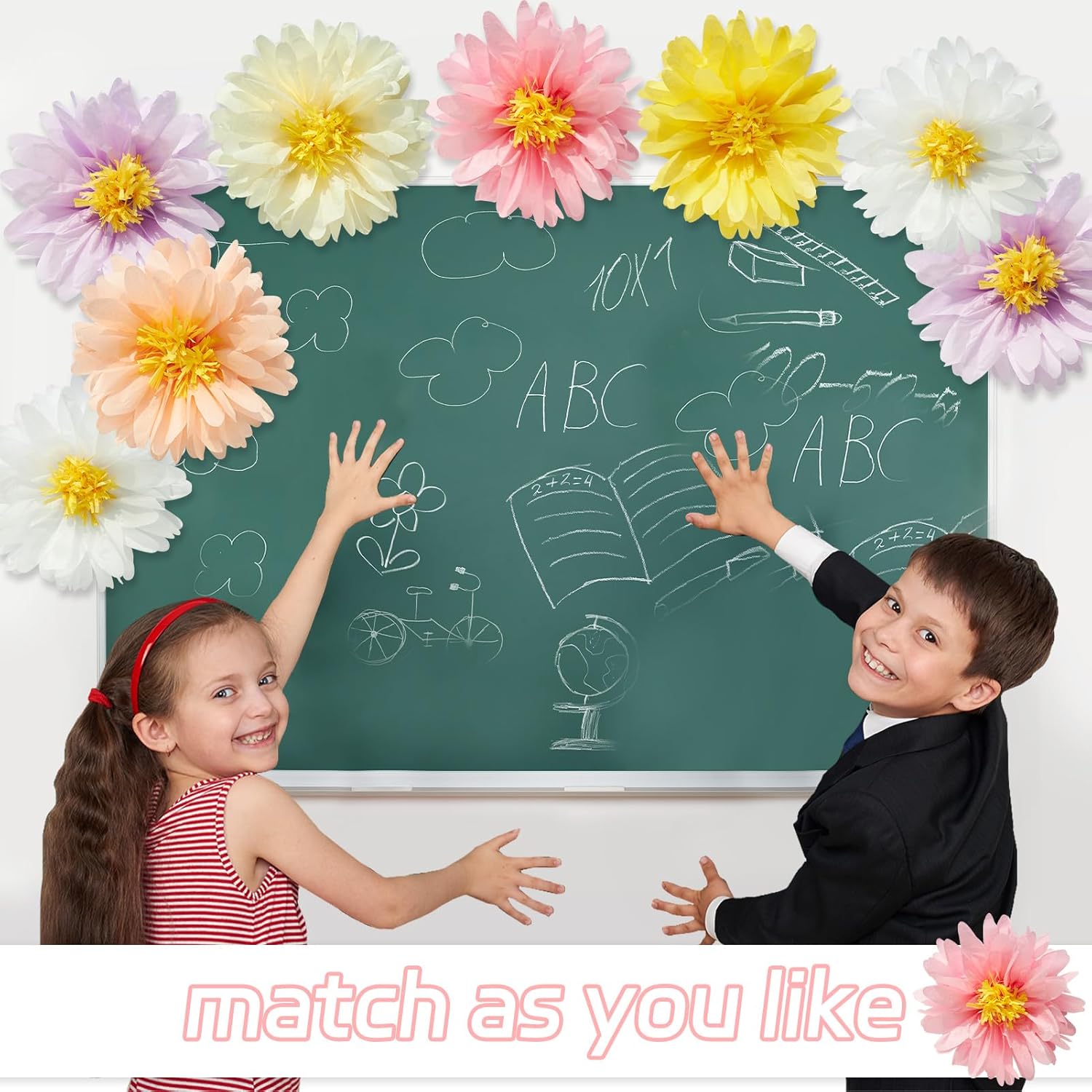 12 Pcs Daisy Tissue Paper Pom Poms Party Decorations Colorful Tissue Flowers Spring Party Decoration Paper Flowers Decorations for Wall Backdrop Garden Wedding Decor