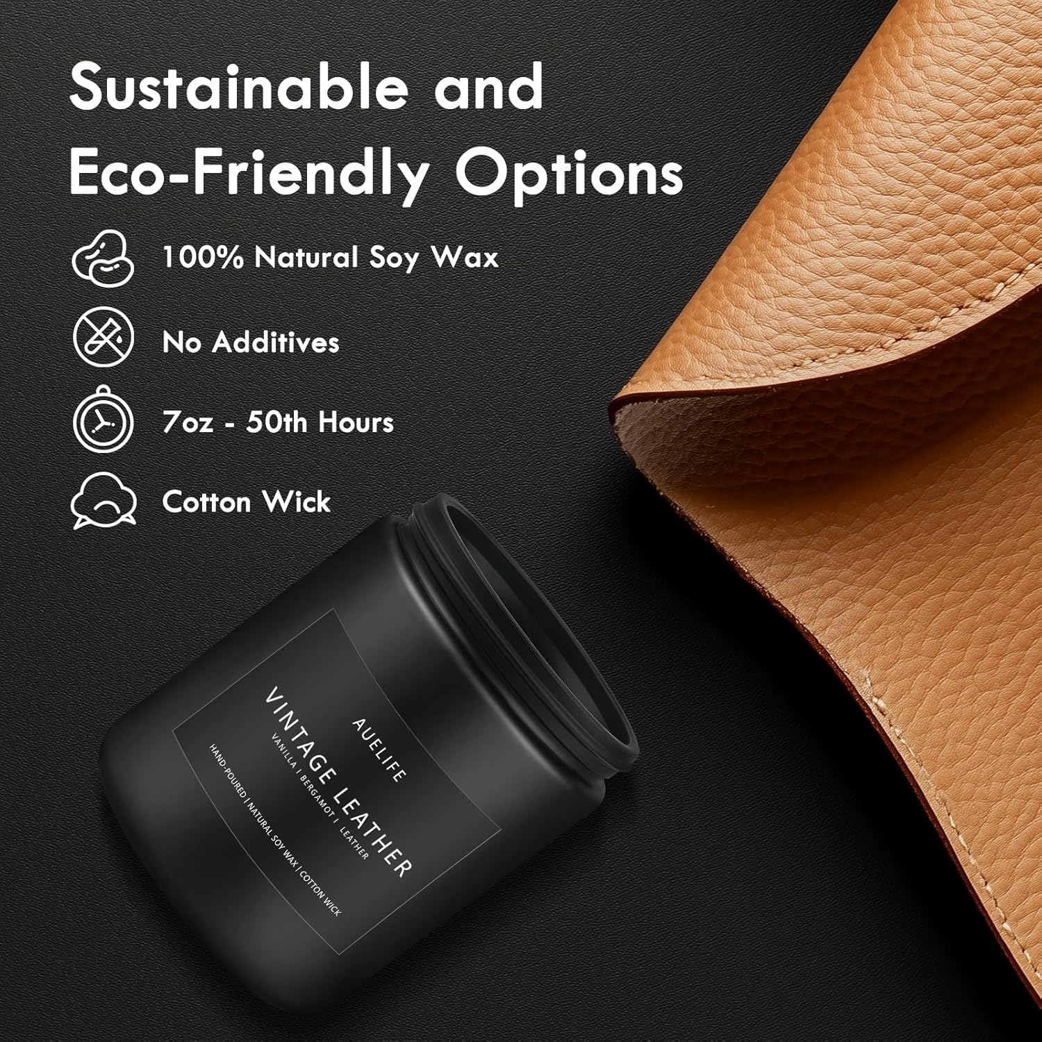 Vintage Leather Candle | Men Candles, Soy Candle for Home Scented - Man Scented Candles for Home, Men Gifts for Him - 7oz Black Jar Gifts for Friends