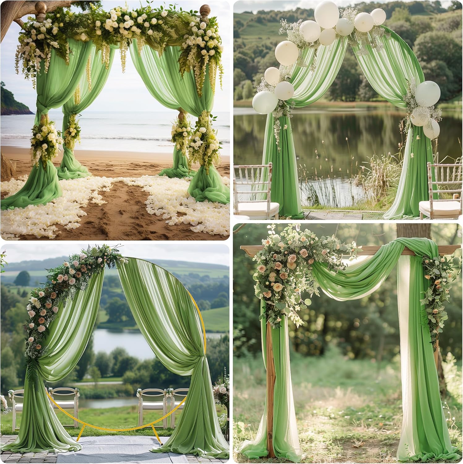 Wedding Arch Draping Fabric 3 Panels 28.7" x 20FT Sage Green Sheer Chiffon Backdrop Drapes for Wedding Ceremony Birthday Party Bridal Shower Outdoor Decoration