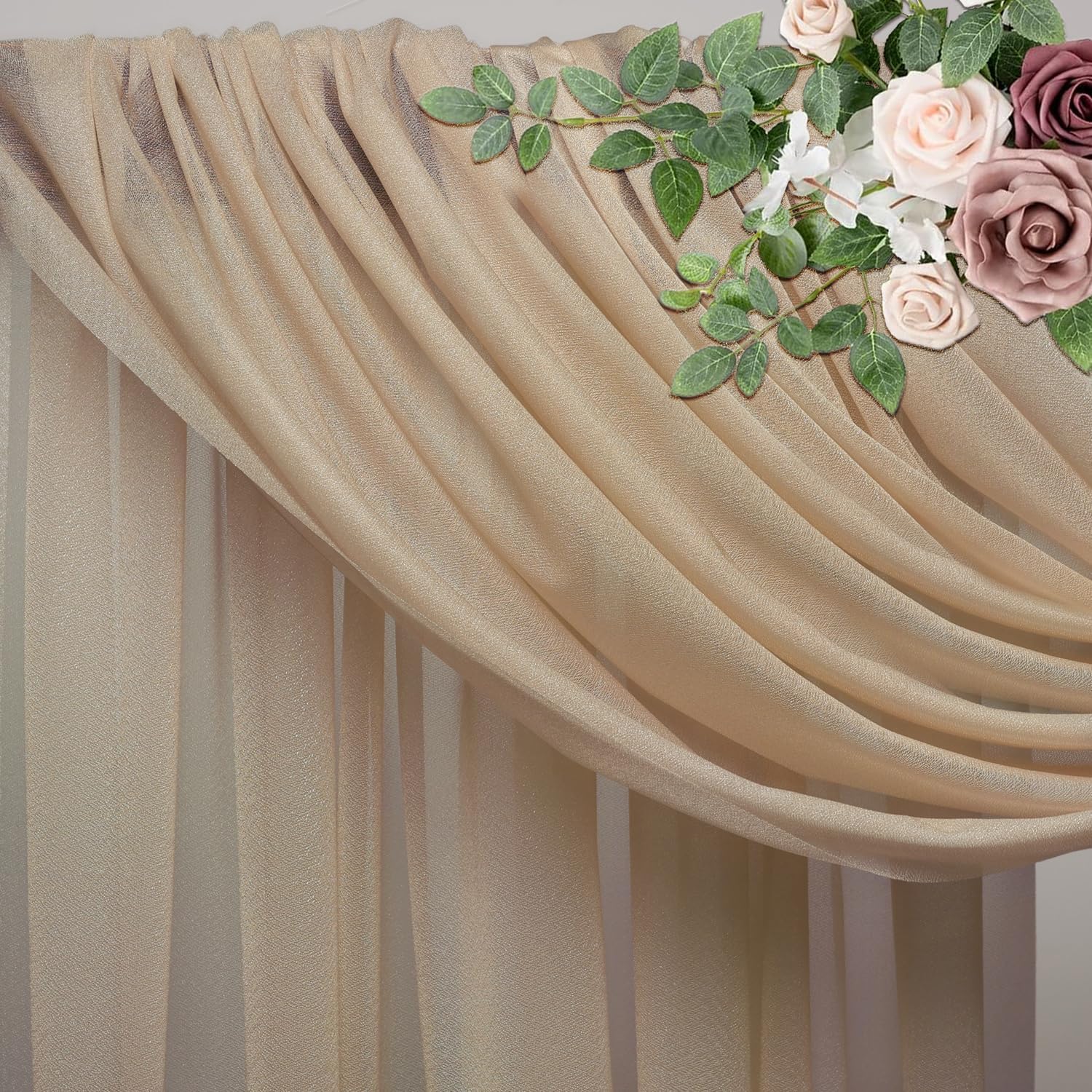 Wedding Arch Draping Fabric 6 Panels 28.7" x 20FT Nude Sheer Chiffon Backdrop Drapes for Wedding Ceremony Birthday Party Bridal Shower Outdoor Decoration