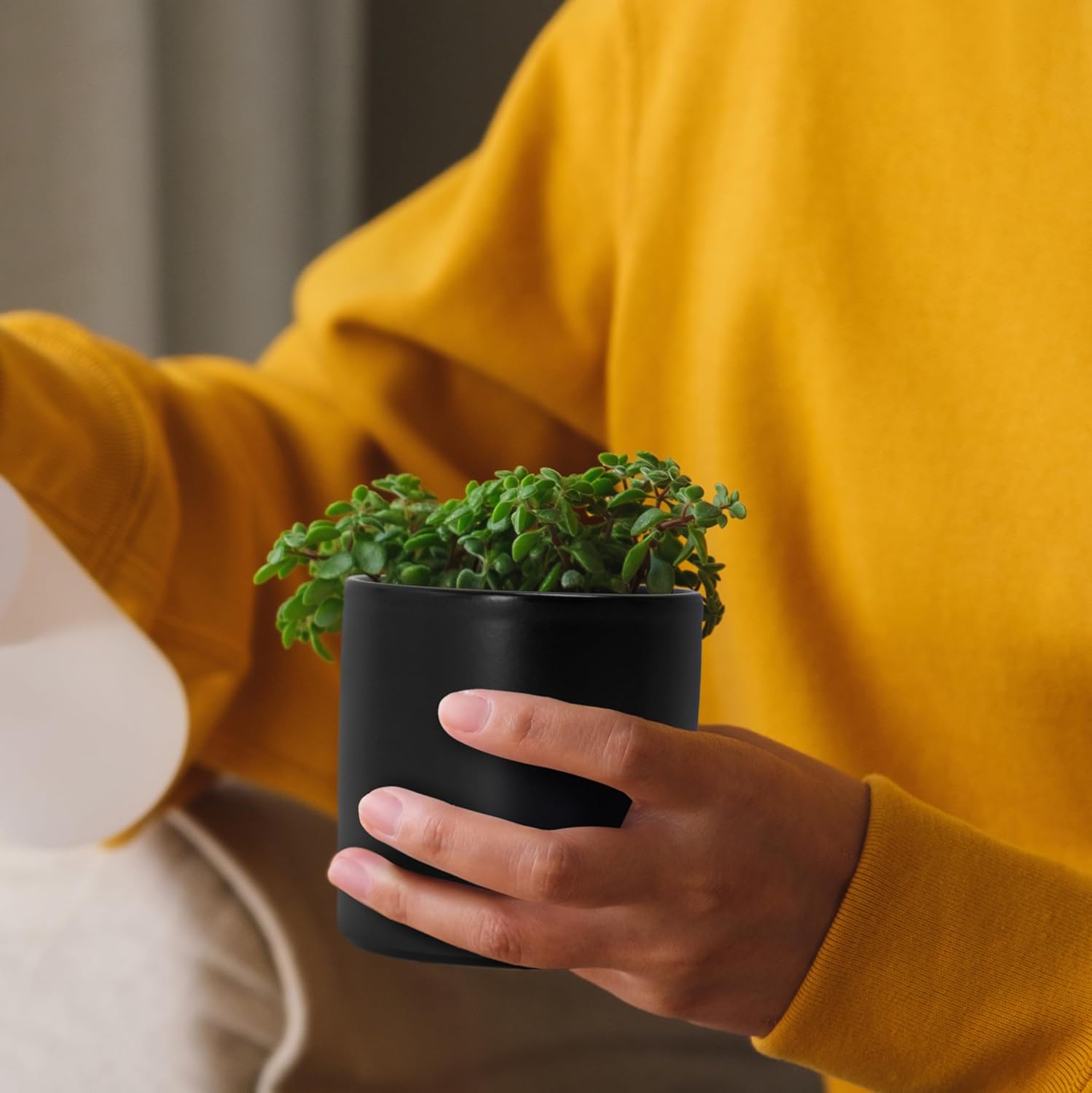D'vine Dev Set of 4 Small Ceramic Plant Pots, 3.5 Inch Succulent Planter Pot for Plants with Drainage Hole and Saucer, Black, 94-X-A-2
