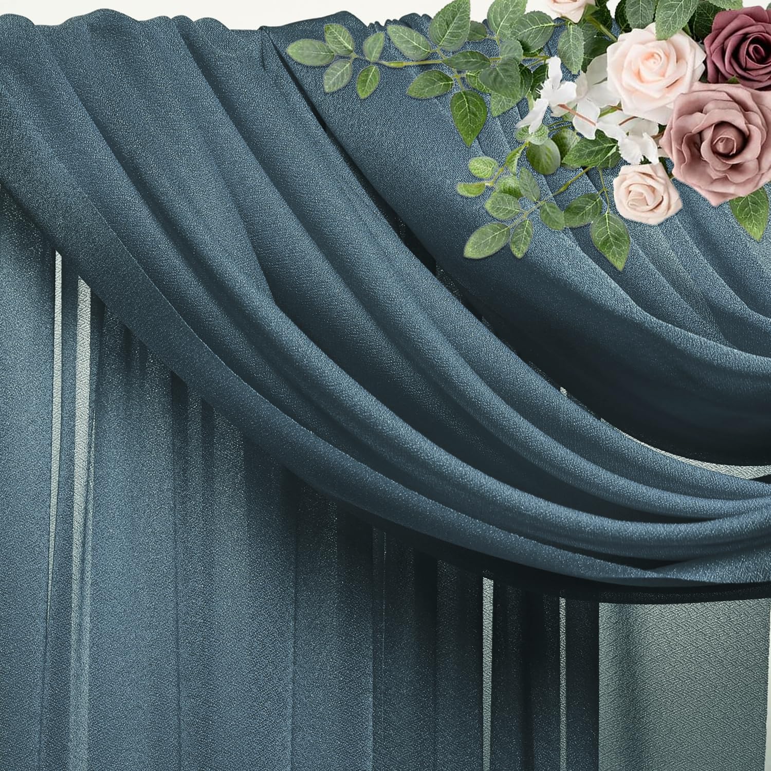 Wedding Arch Draping Fabric 6 Panels 28.7" x 20FT Grey Blue Sheer Chiffon Backdrop Drapes for Wedding Ceremony Birthday Party Bridal Shower Outdoor Decoration