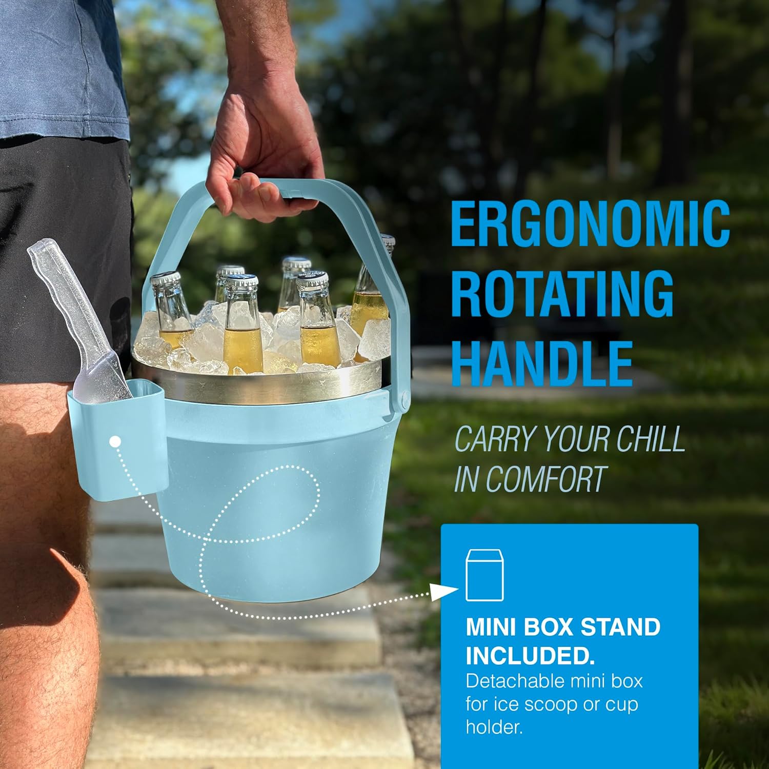 - Large Insulated Ice Bucket; Designed for performance and portability; Non-slip rubber base keeps it stable on any surface