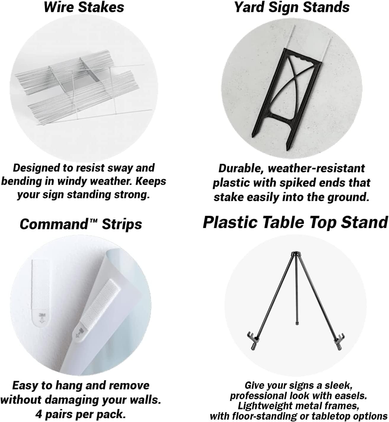 - Each yard sign comes in 4 sizes for your choice, 12''W x 18''L, 18''W x 24''L, 18''W x 27''L, or 24''W x 36''L. It is printed at high resolution and is weather-resistant with high-quality ink to stay strong in all conditions.