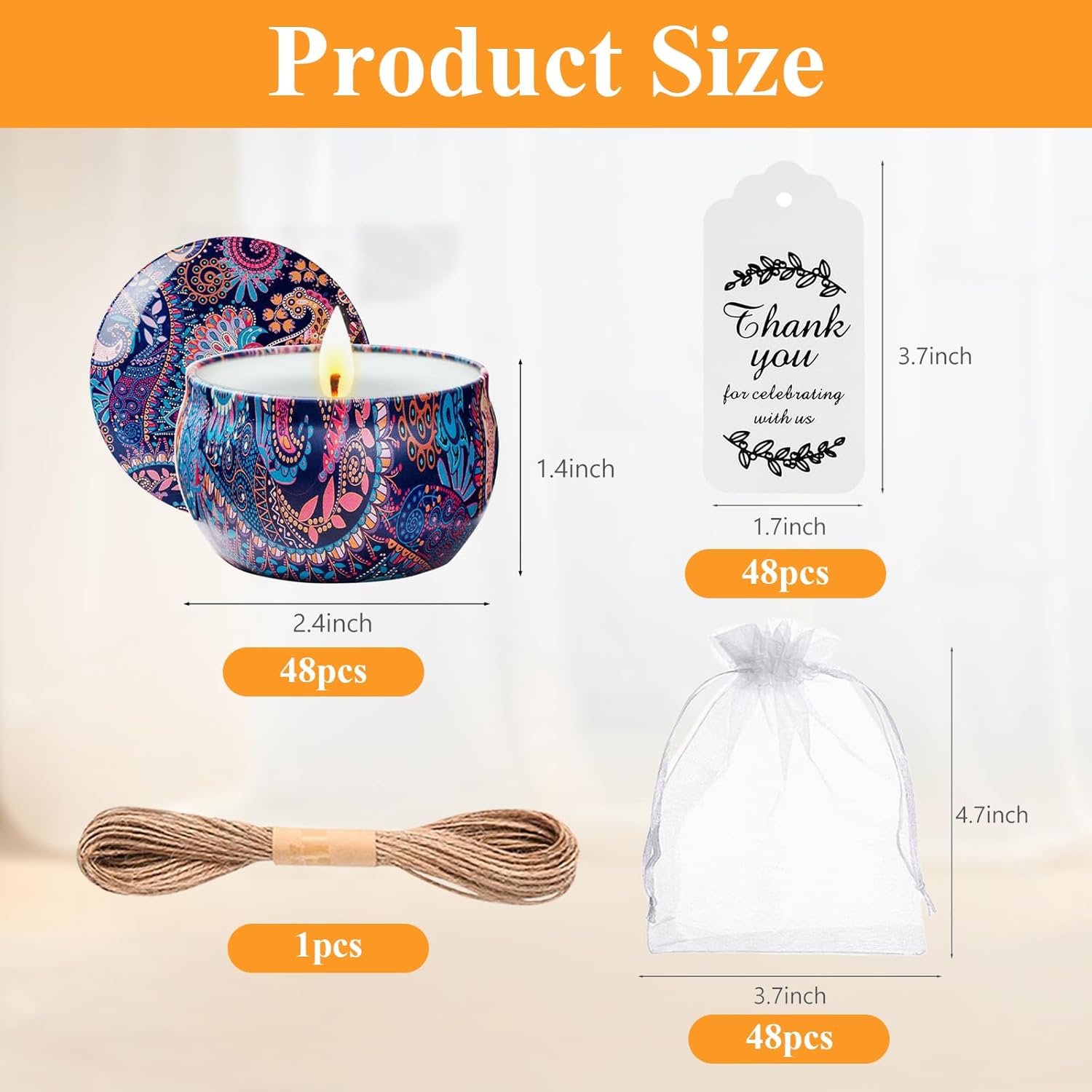 - Candle Sets for Women Gift: Our scented candles gift set includes 48 beautifully packaged candles, 48 charming thank-you tags, 48 classy white gift bags and a 18meter hemp rope. Perfect for adding a touch of elegance to any occasion, this set is ideal for baby showers, weddings, holidays, and special celebrations